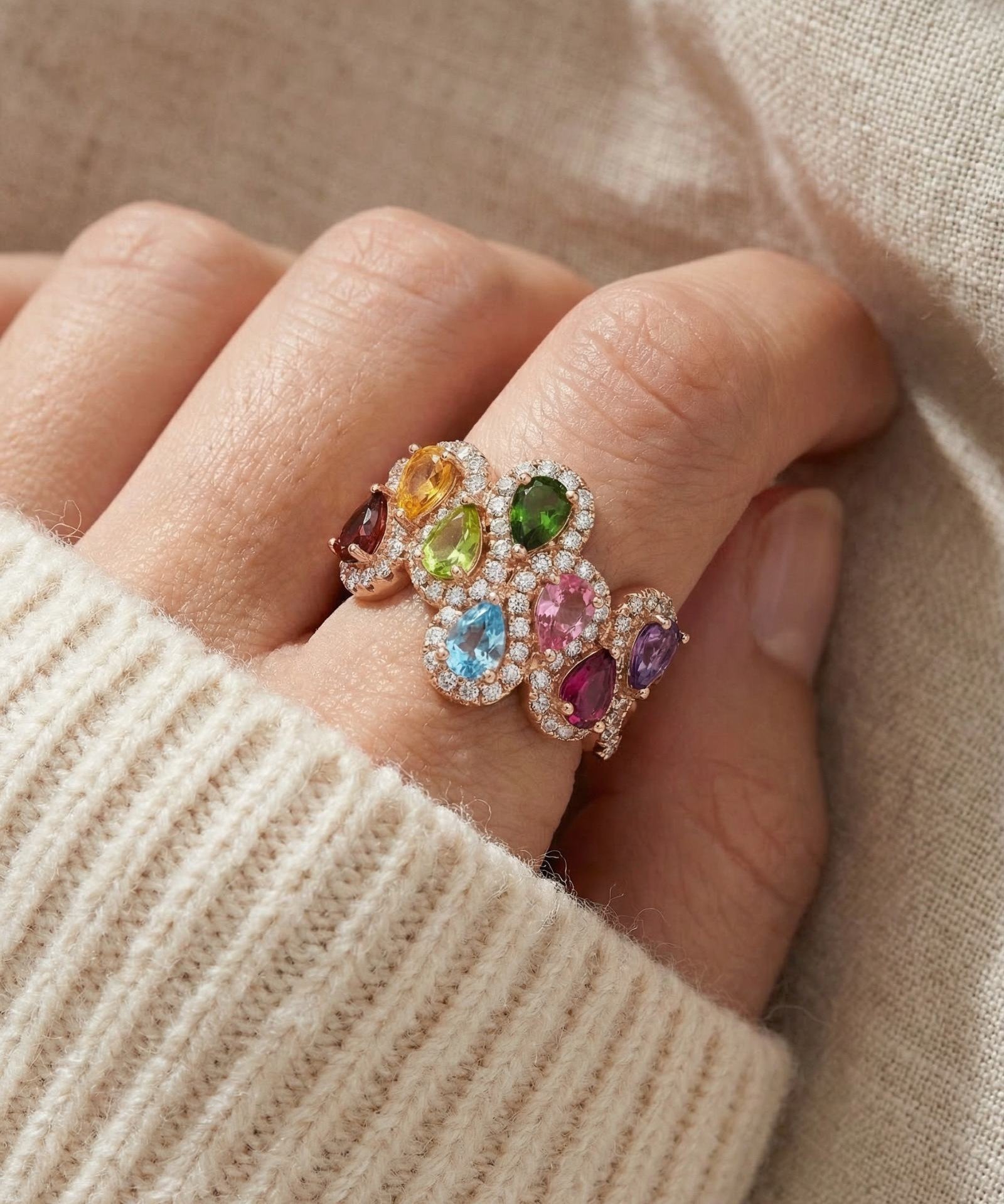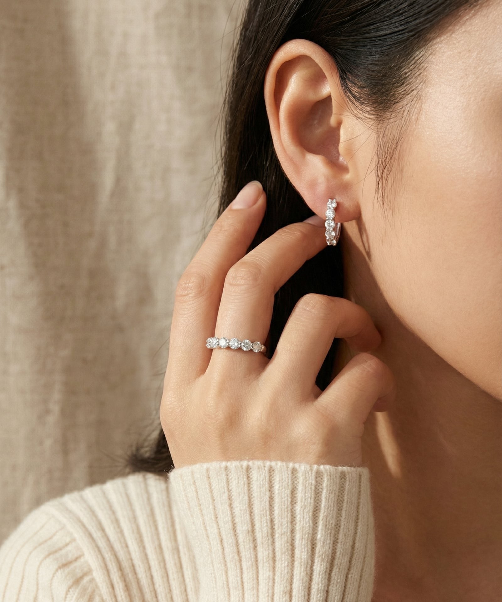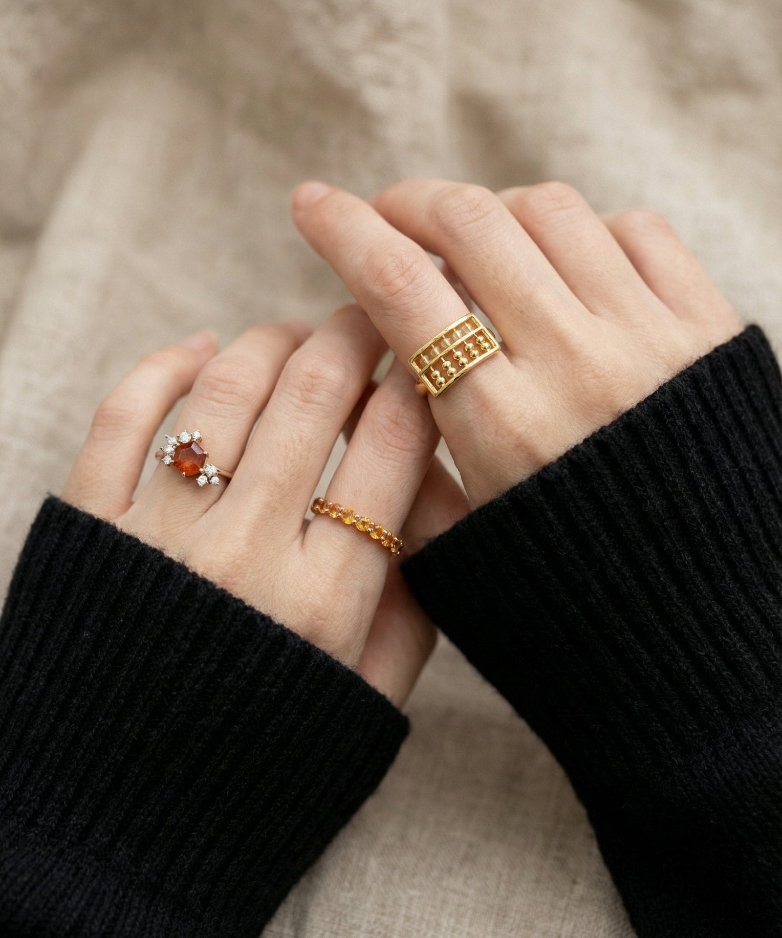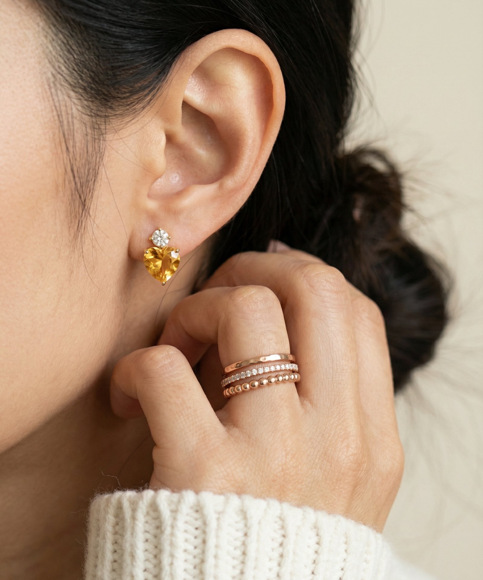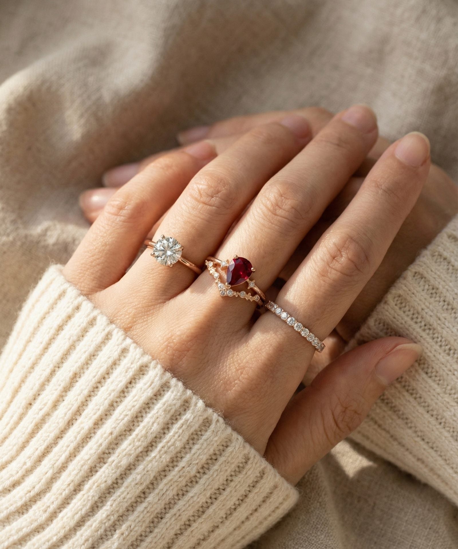 Each piece is thoughtfully constructed with secure settings, smooth finishes, and quality materials. Whether it’s spinning, stacking, or sparkling, our designs are made to keep up with your day — and your stories.