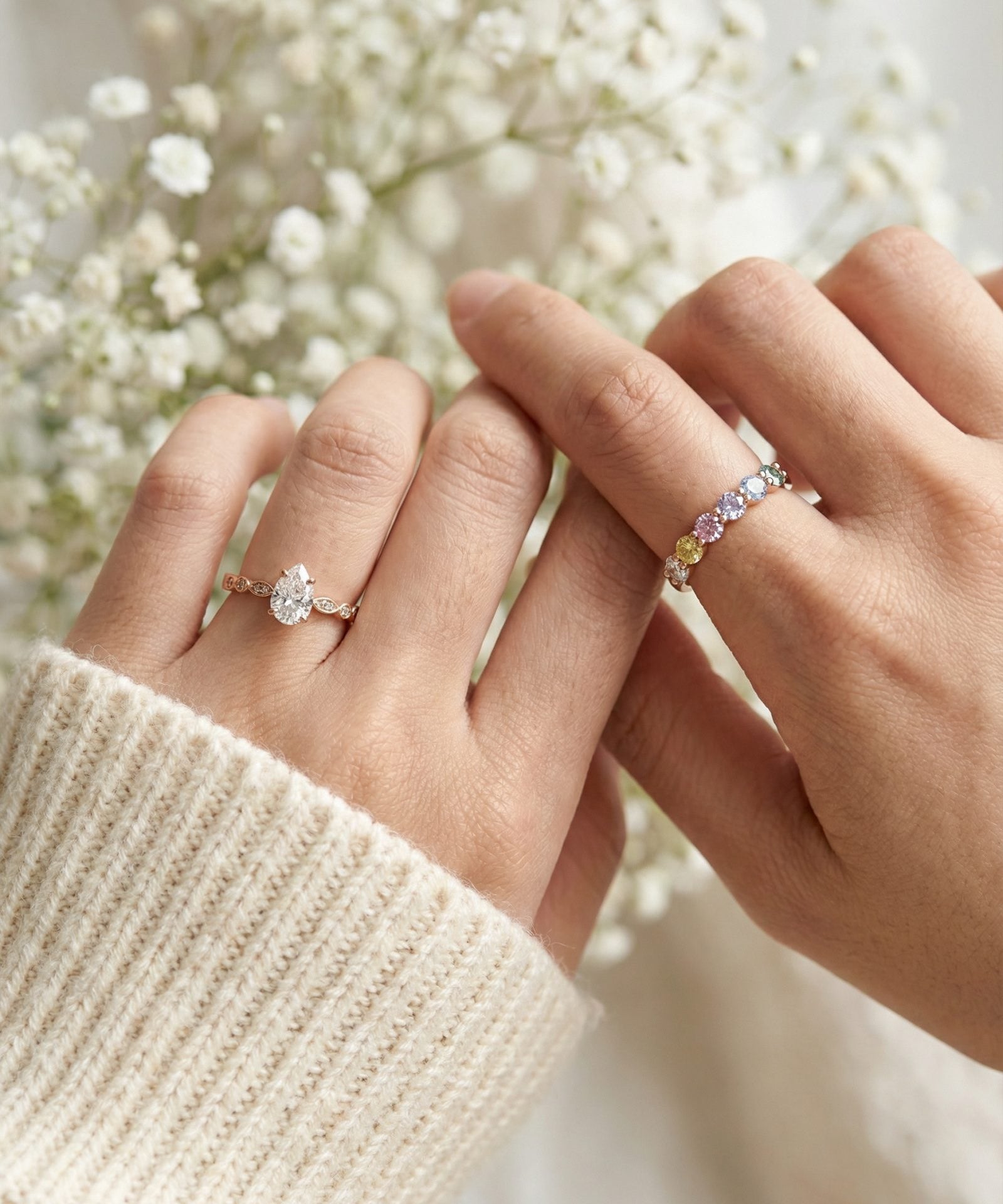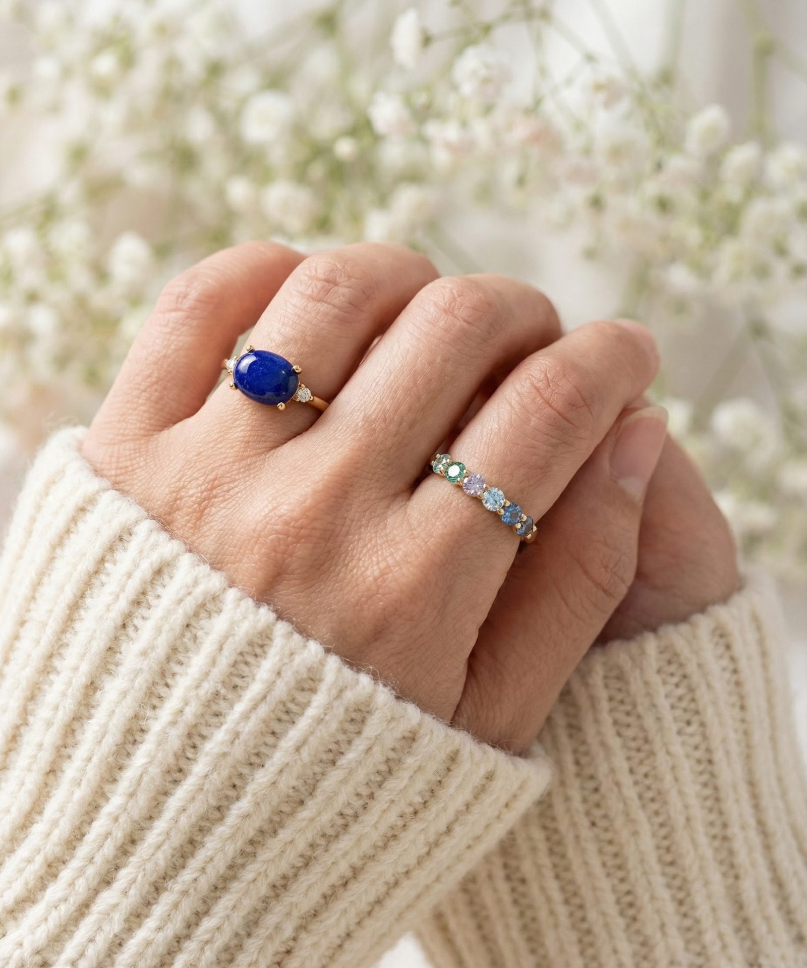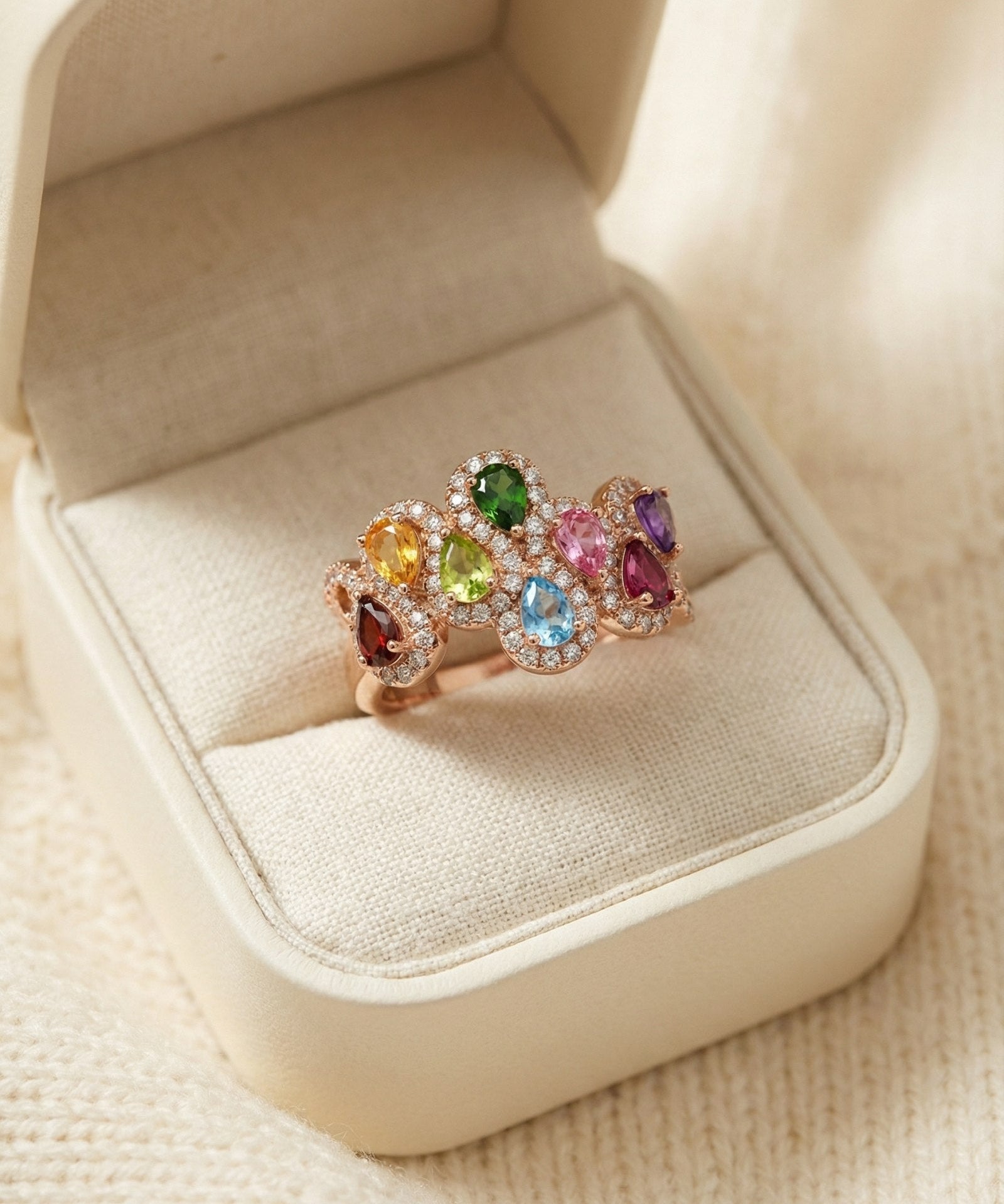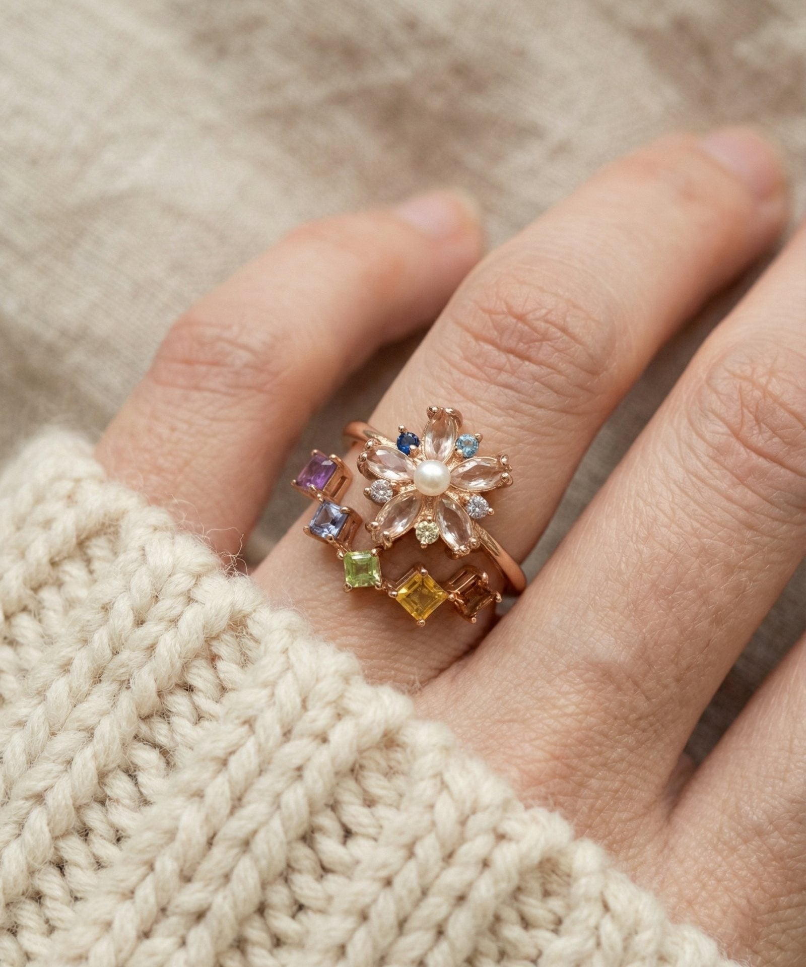 We use natural gemstones, moissanites, freshwater pearls, and carefully selected materials that shine beautifully without feeling overdone. Every stone is chosen to add meaning, colour, and a little joy.