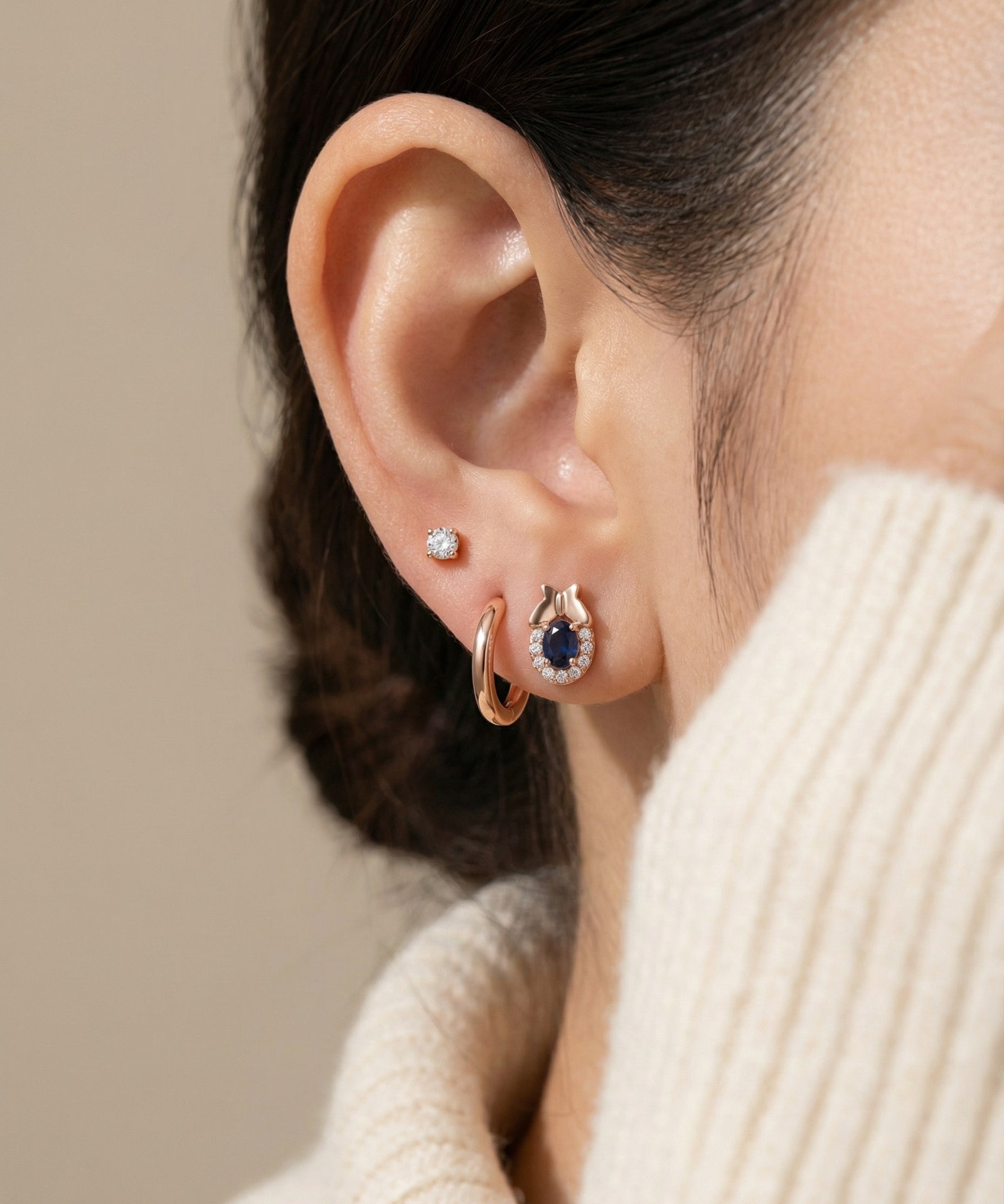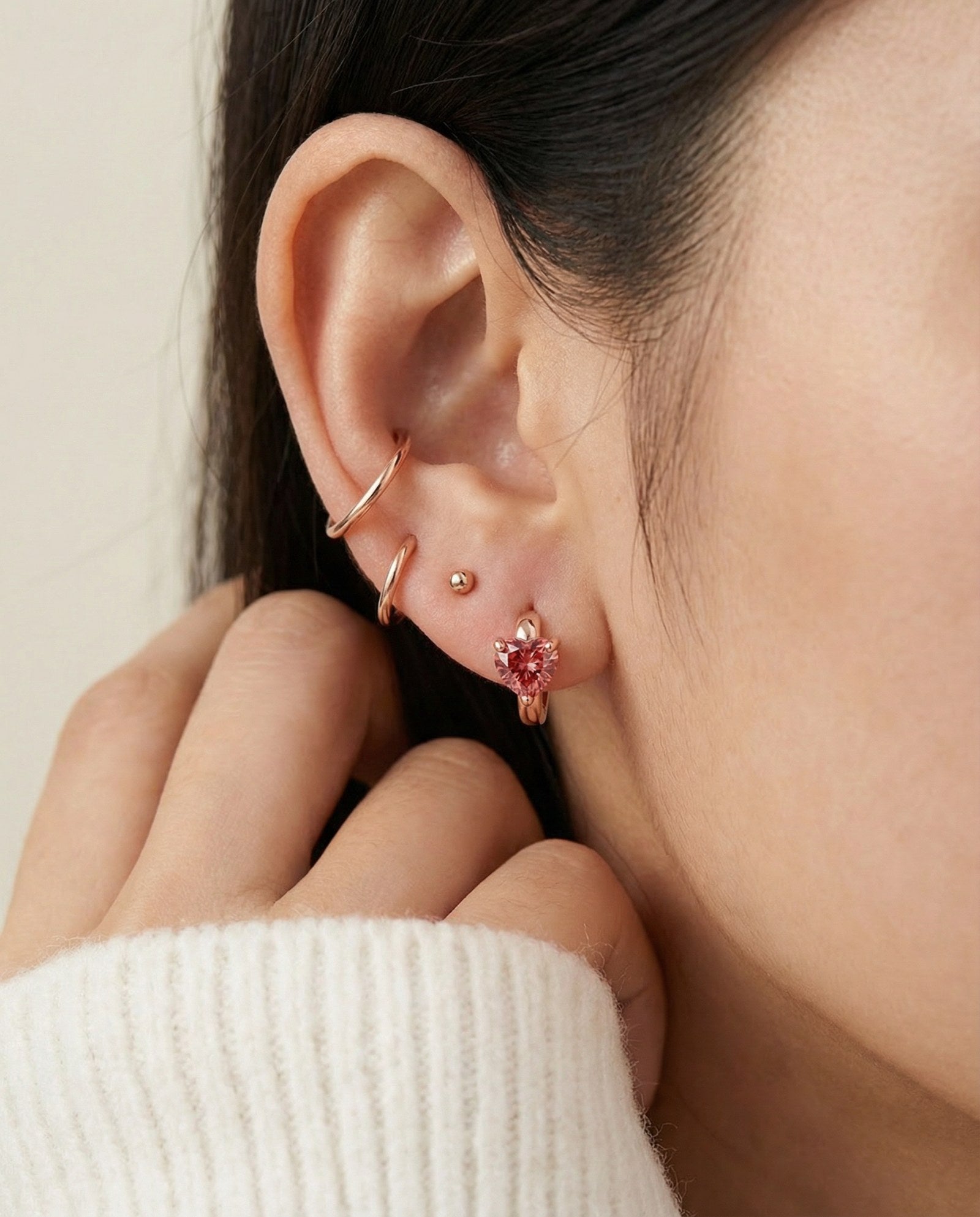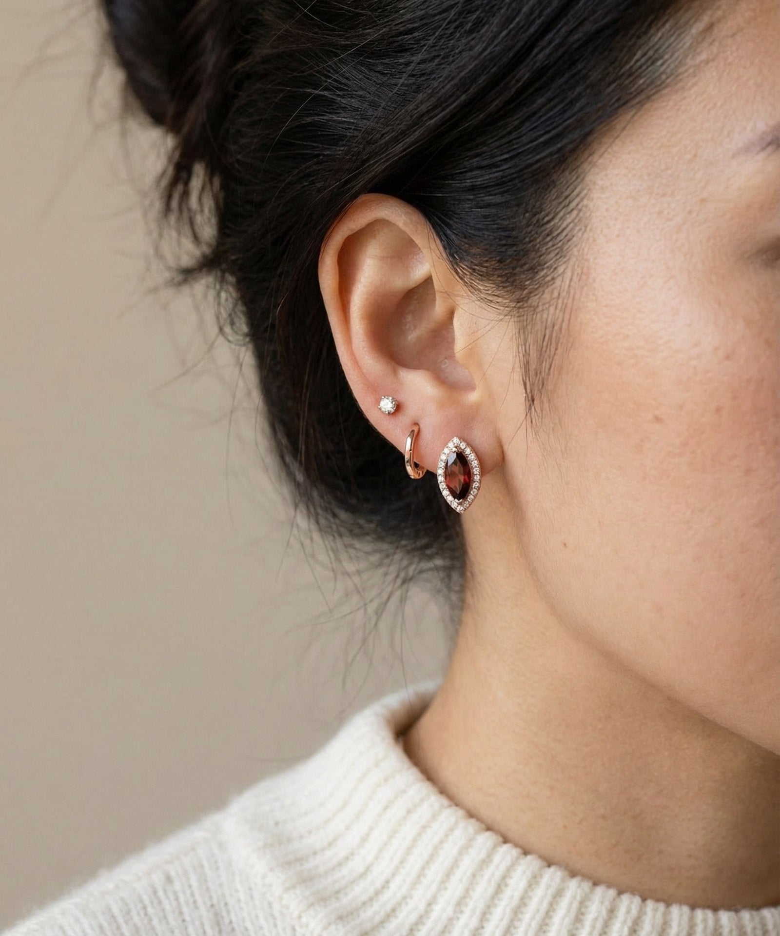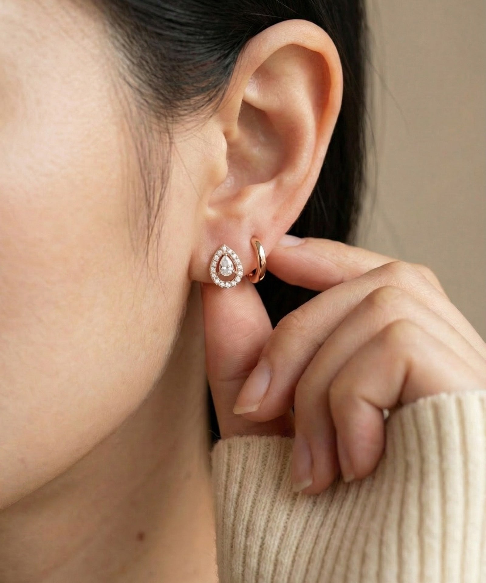 We design our jewelry with sensitive skin in mind. Crafted using 925 silver and plated in real 18k gold, our pieces are nickel-free and gentle enough for everyday wear — even for sensitive ears and skin.
