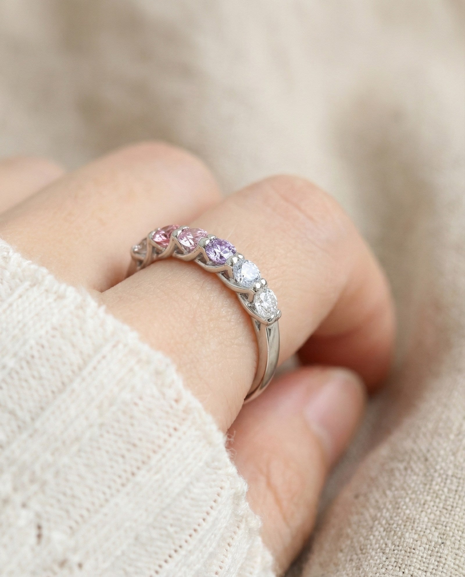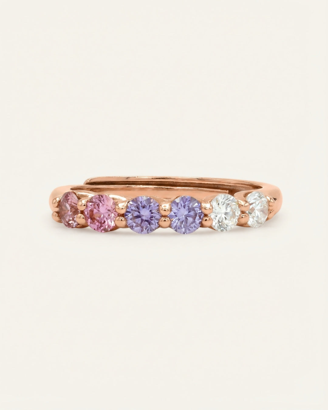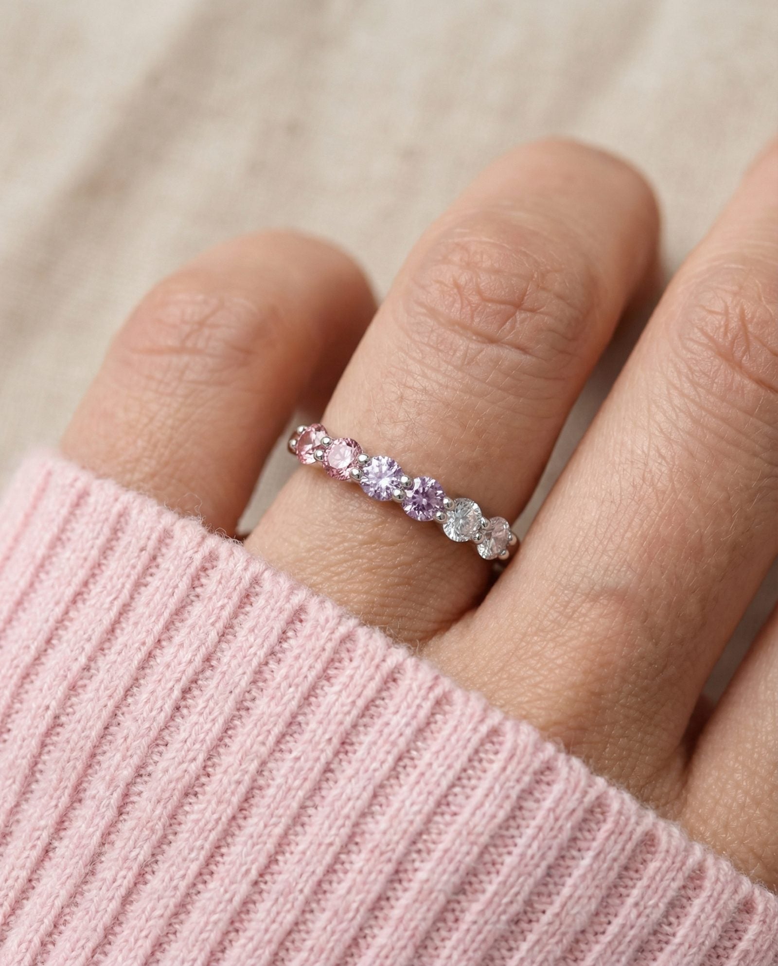 Cotton candy dreams 🍭Our Entwine Eternity Band in dreamy pink, sweet lilac, and white is a sugar-sweet delight. With entwining prongs that swirl around each gem, it’s like wearing a treat that sparkles.