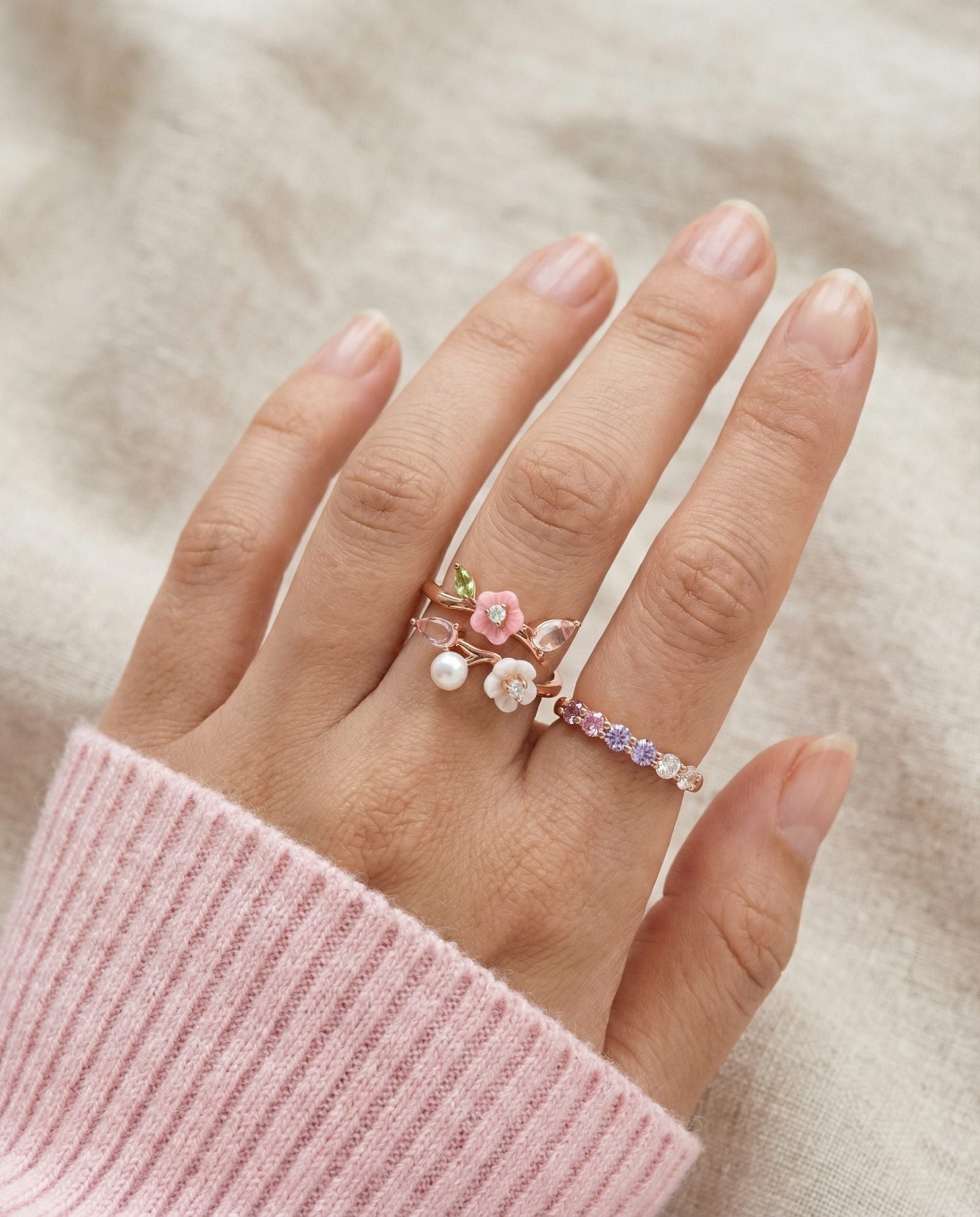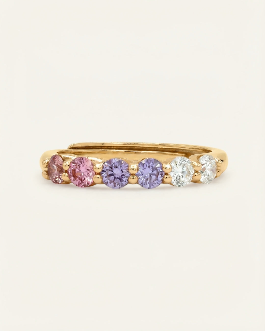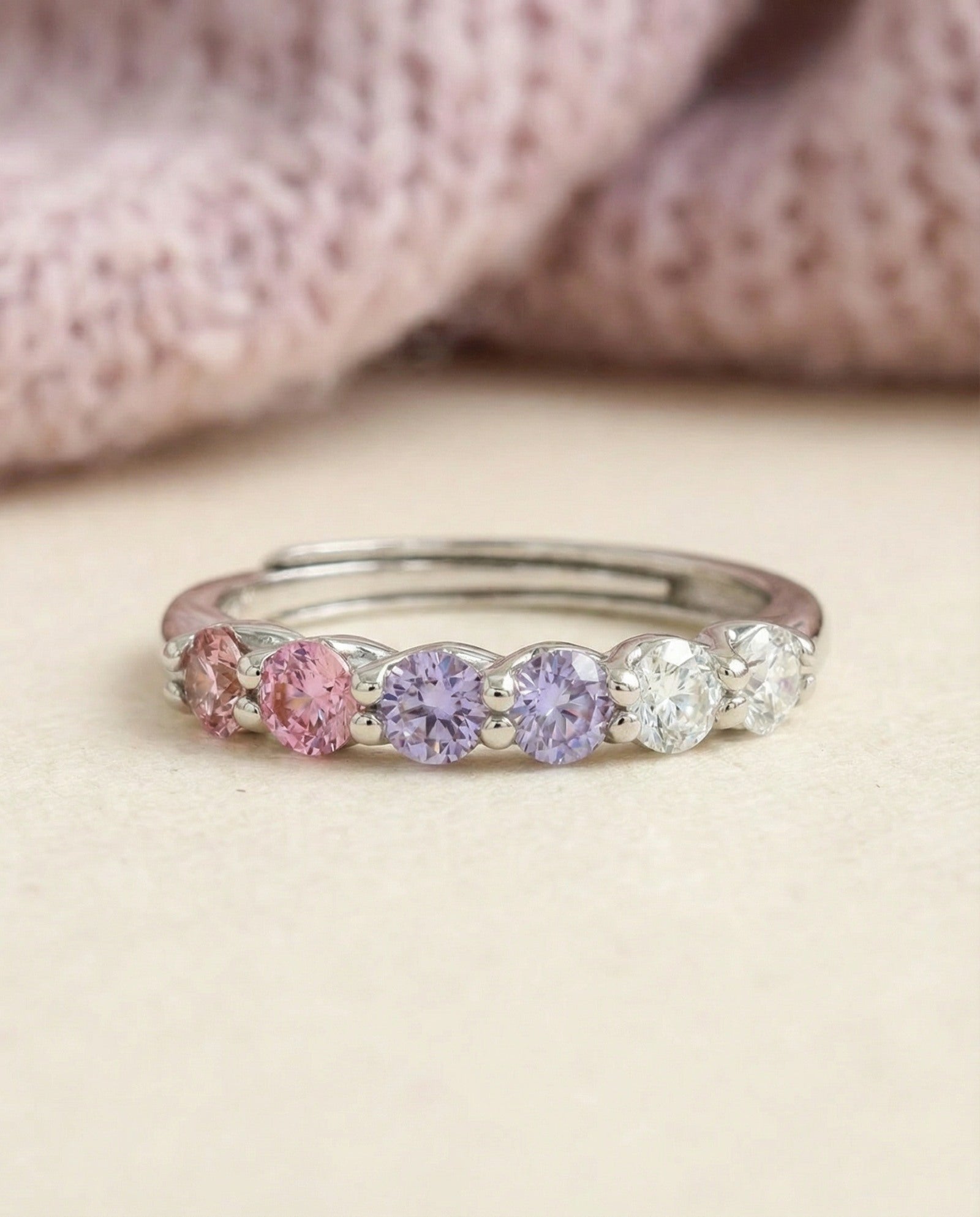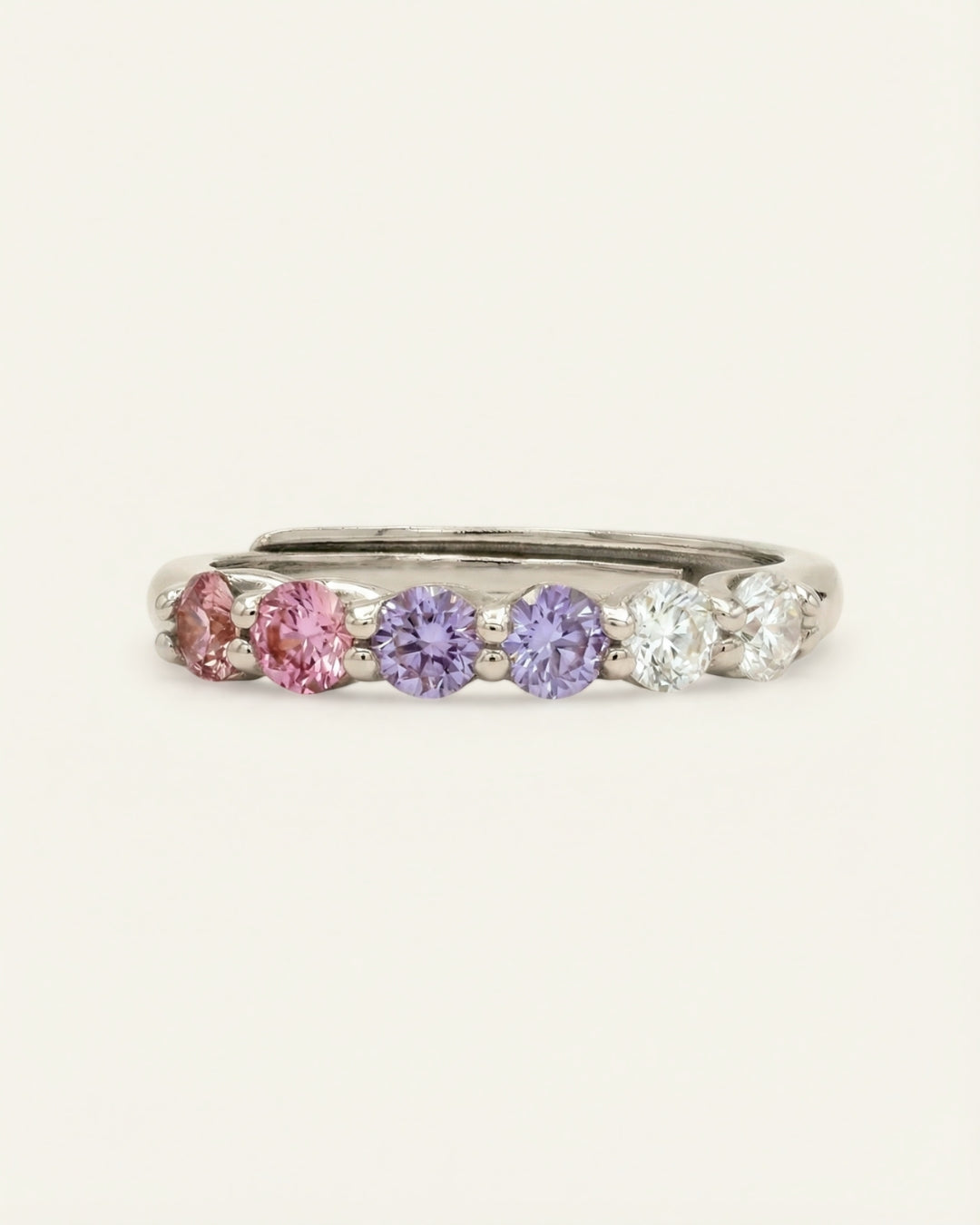Cotton candy dreams 🍭Our Entwine Eternity Band in dreamy pink, sweet lilac, and white is a sugar-sweet delight. With entwining prongs that swirl around each gem, it’s like wearing a treat that sparkles.