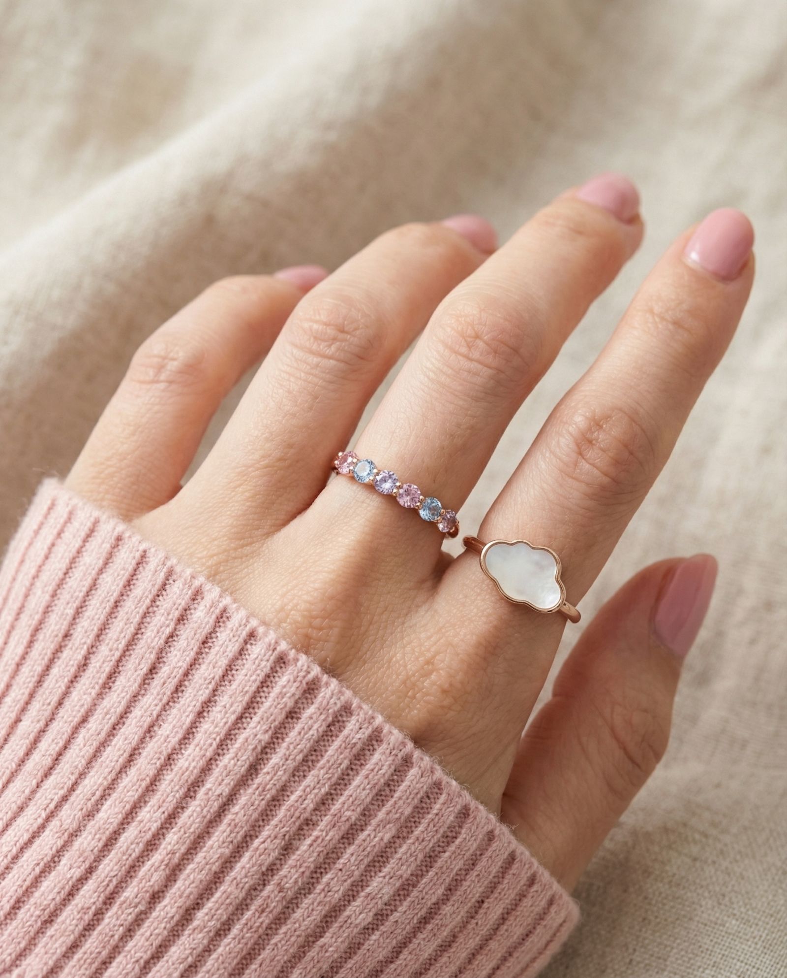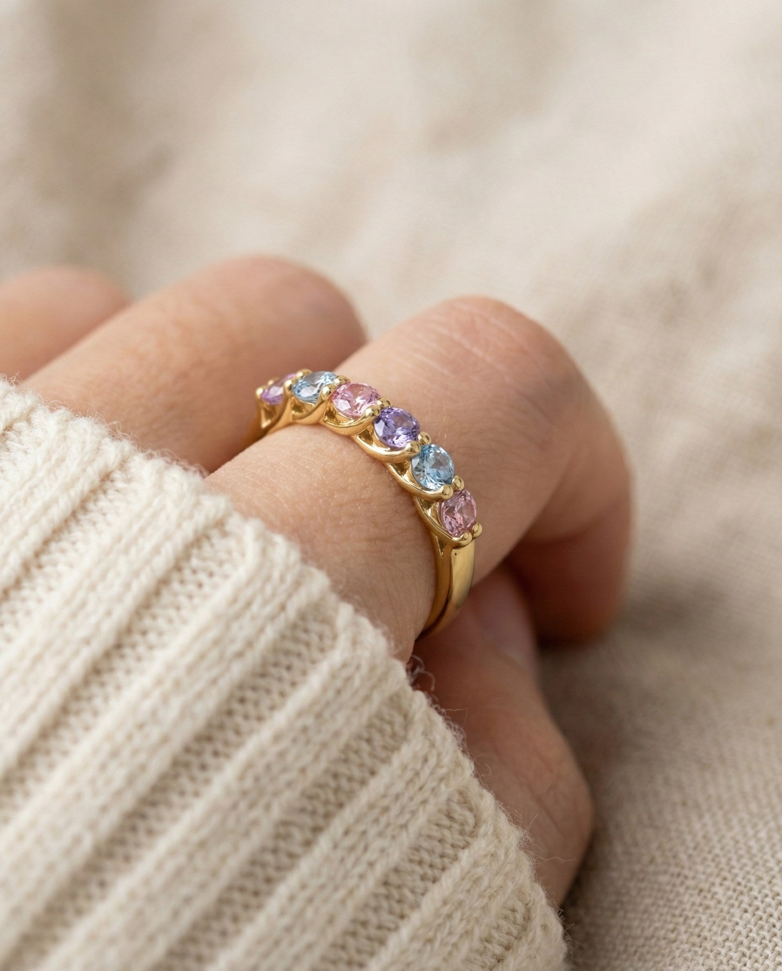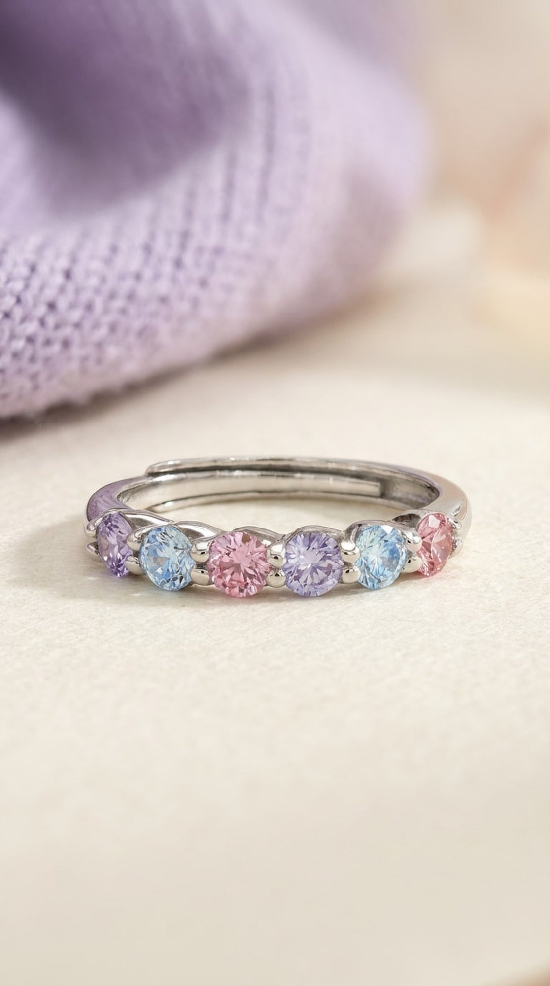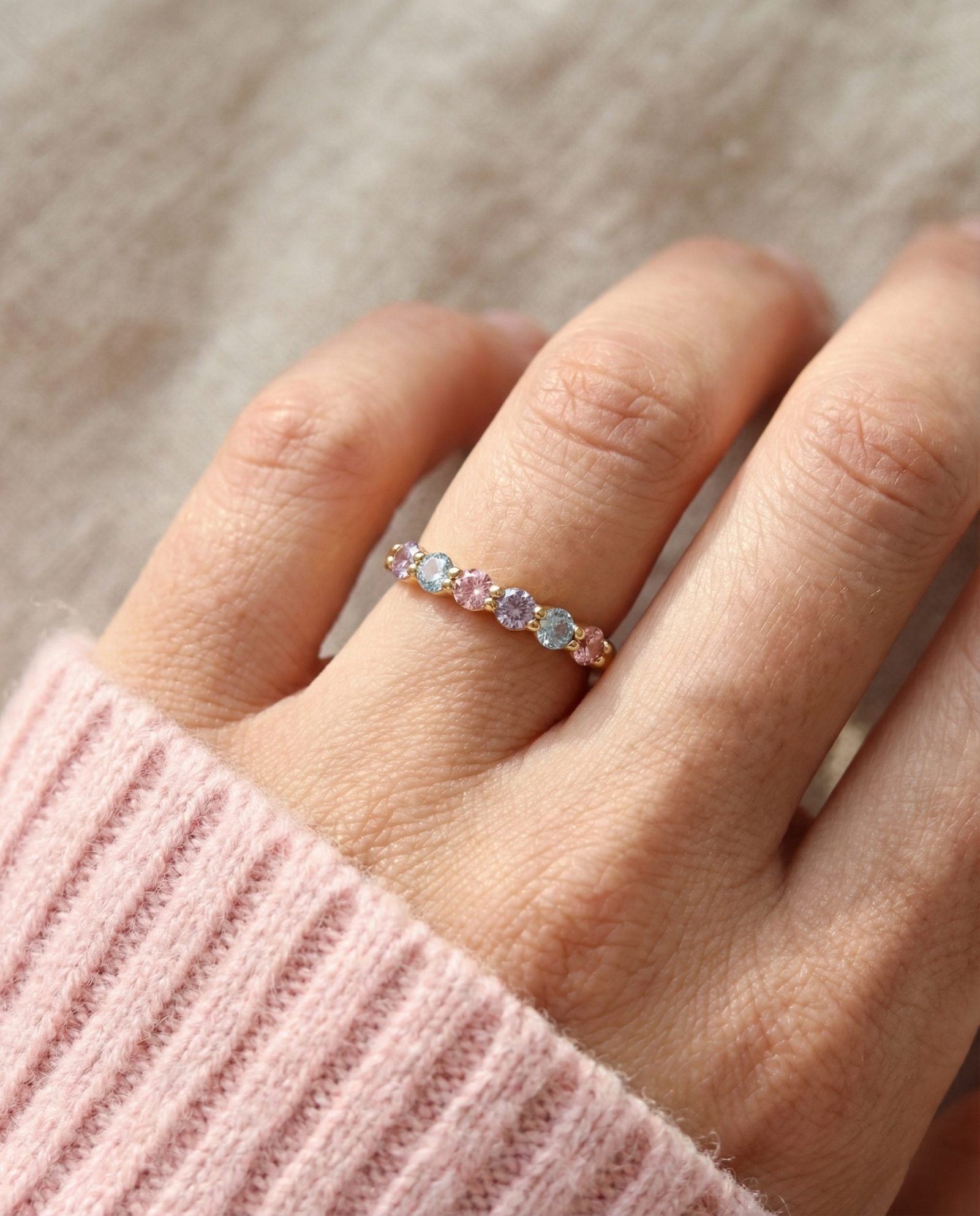 Soft as a daydream ✨Our Entwine Eternity Band in baby blues, blush pinks, and lilacs adds a touch of whimsy to timeless sparkle. With delicate prongs entwining to showcase each gem’s gentle glow, it’s pure, pastel perfection.