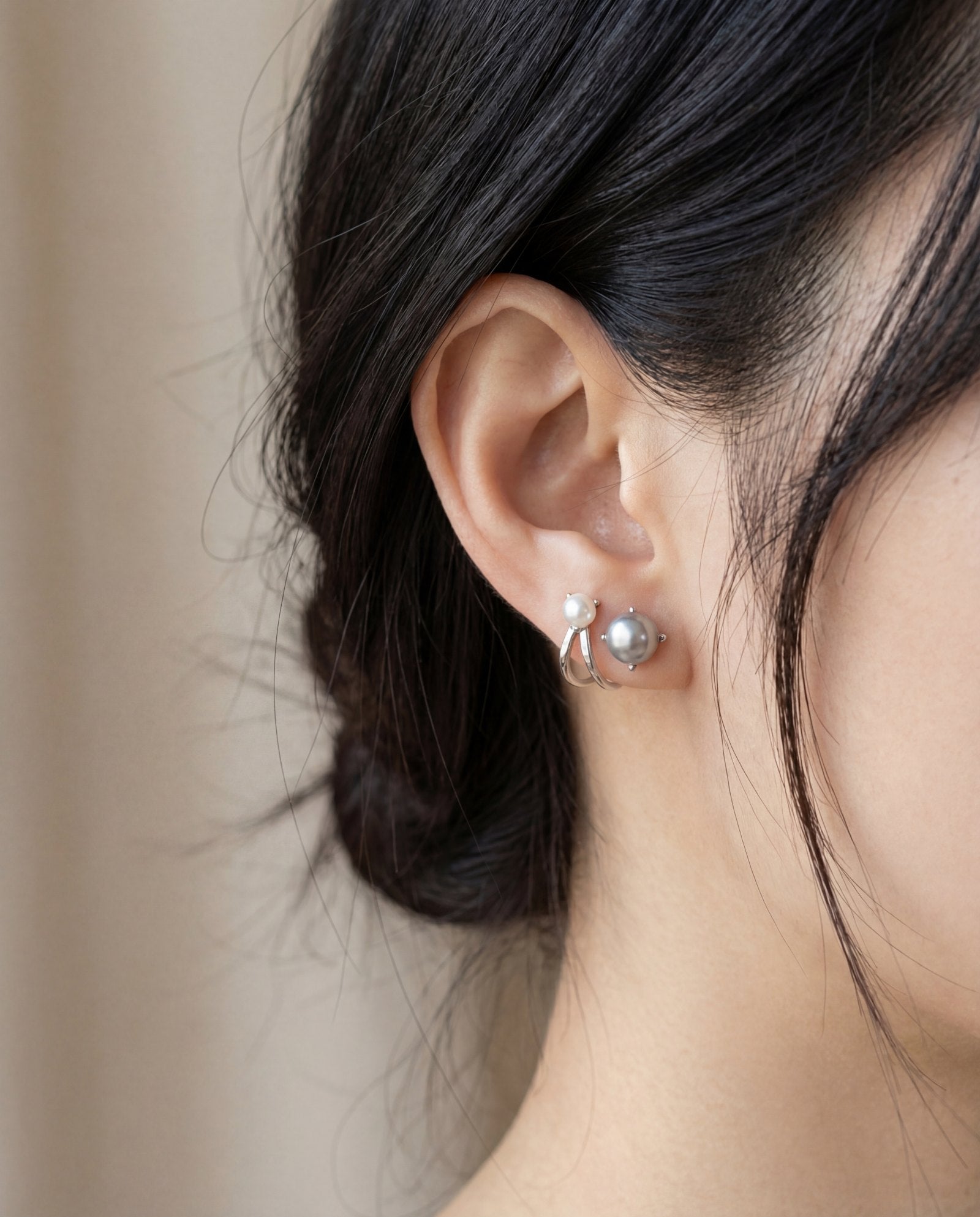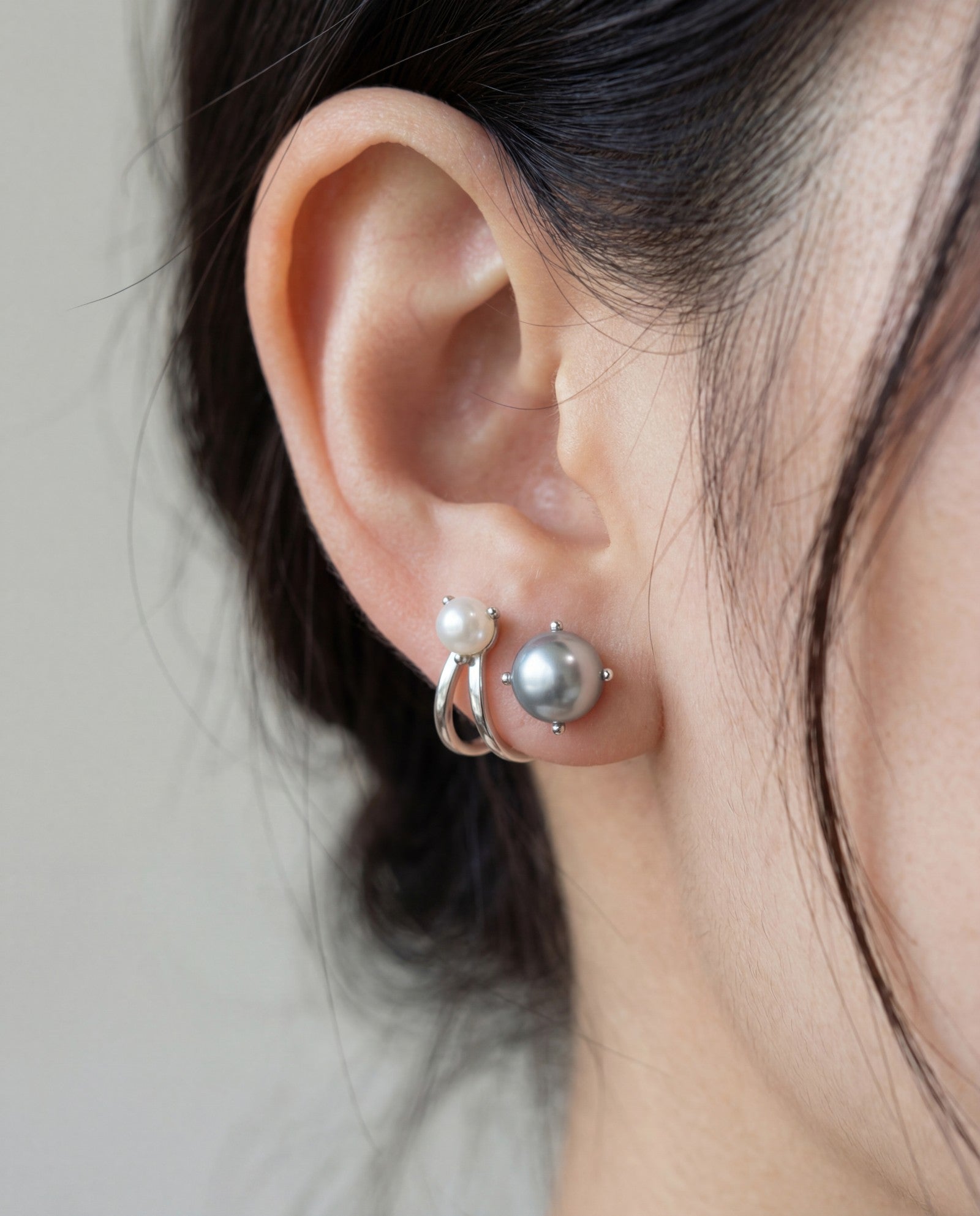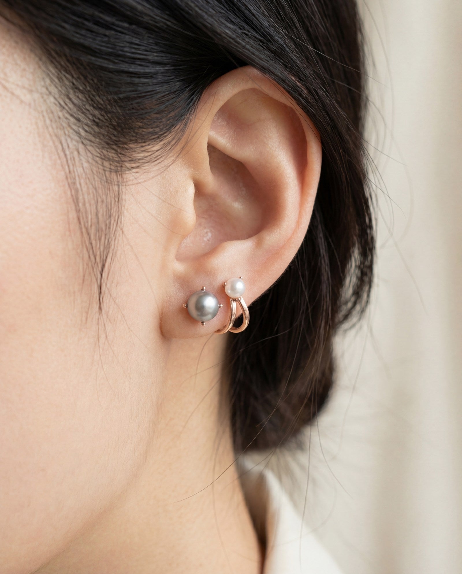 • Stone size: ~6 mm Grey Pearl & ~4 mm White Pearl