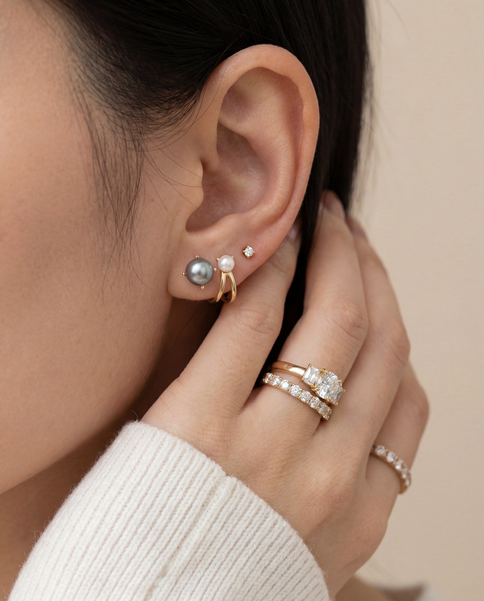 Super versatile. Wear it alone as a single pearl stud OR put on the jacket and double it up for twice the charm.