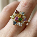 Only the top gem cluster spins, gliding effortlessly like a tiny fidget spinner, a soothing motion that brings both calm and delight. Whether you spin it for focus or simply admire its vibrant sparkle, this ring is a reminder to find joy in the little things.