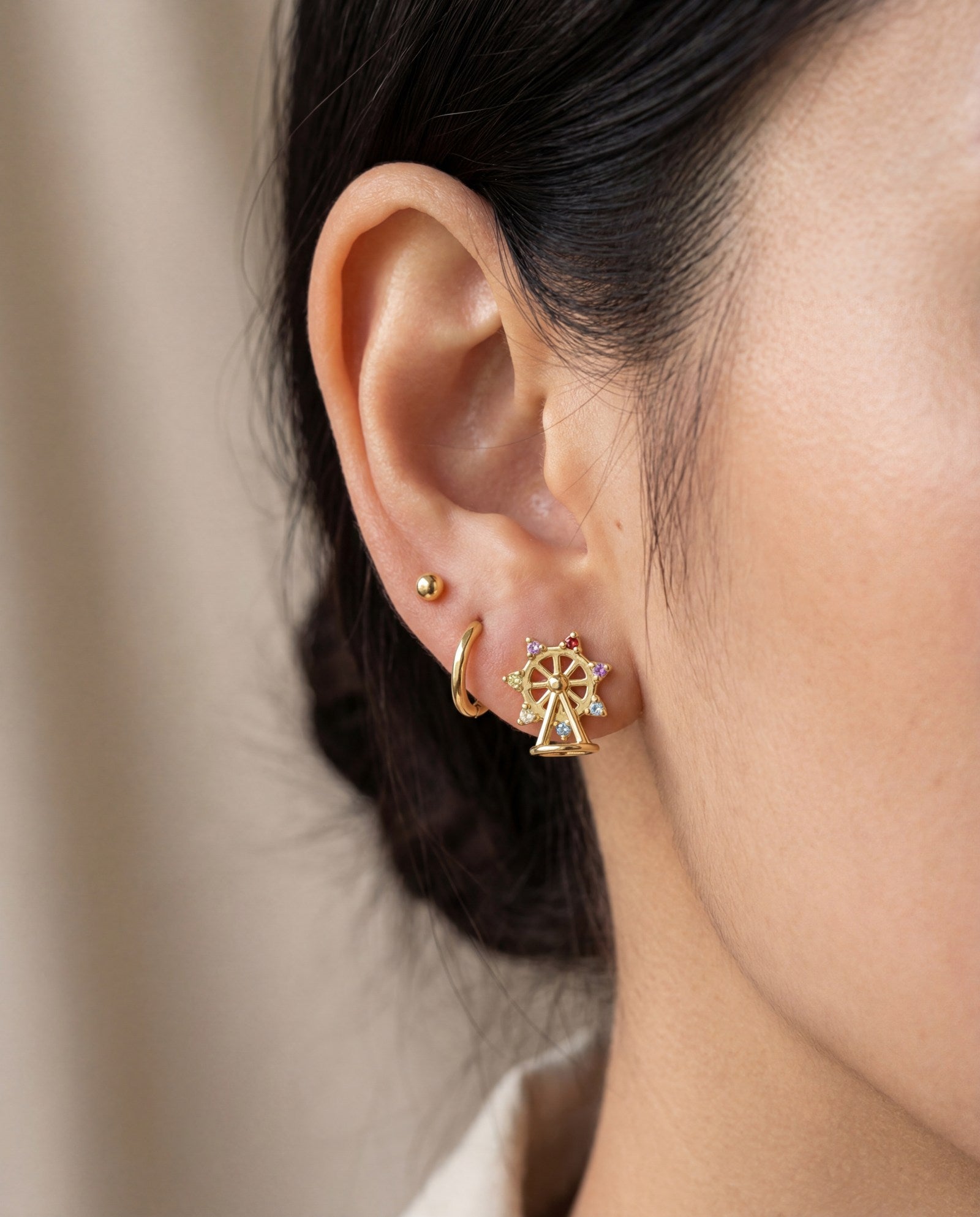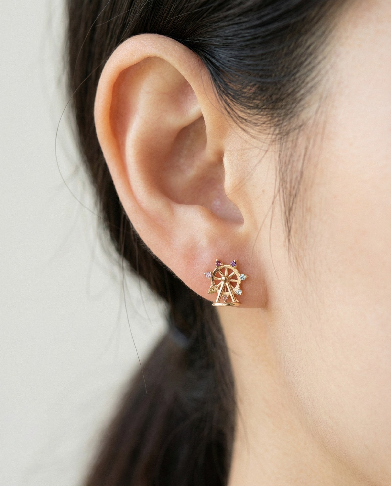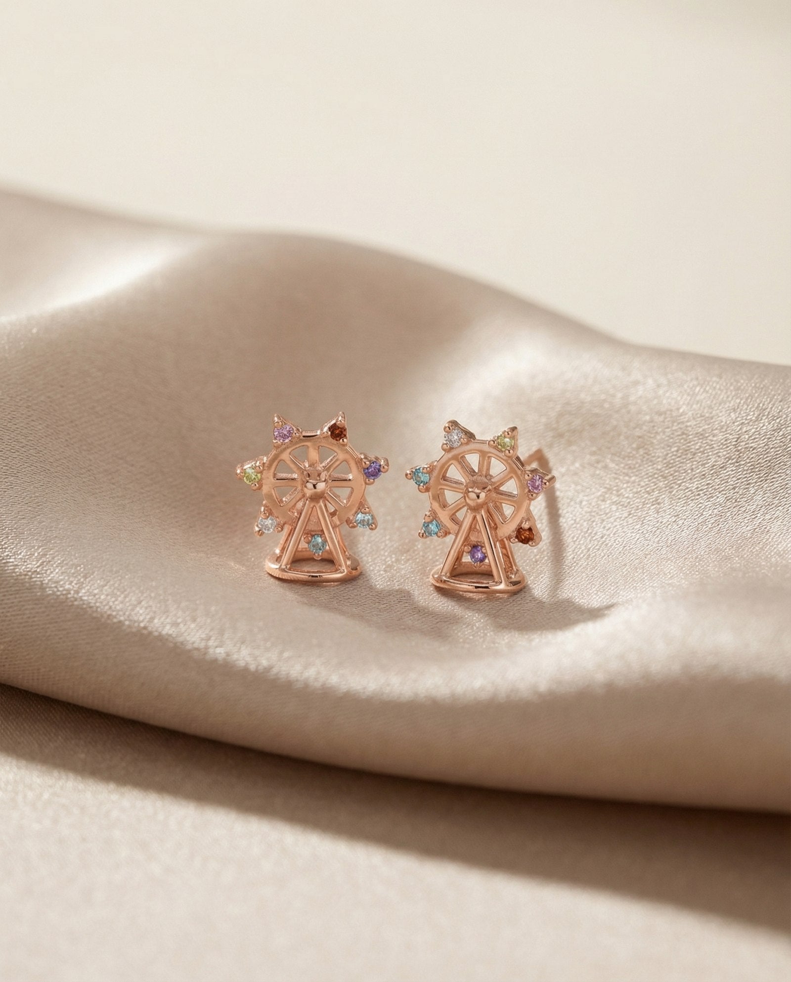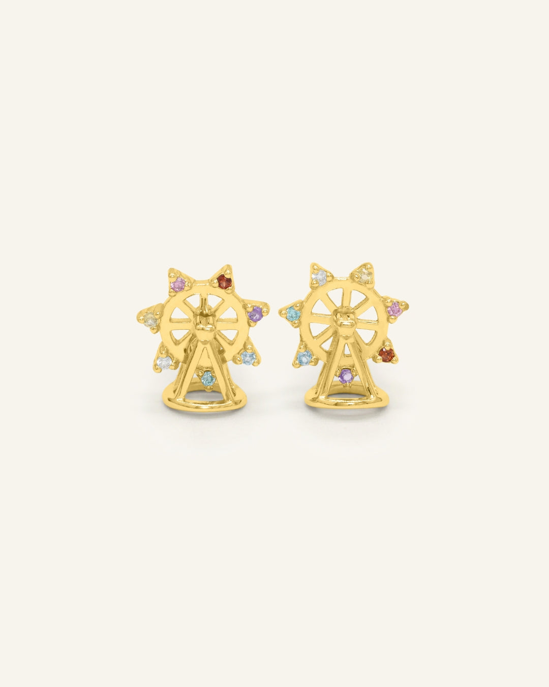 Turn heads with our Spinning Ferris Wheel Earrings – a delightful nod to the playful joy of a day at the fair! These mini marvels bring an irresistible charm to your look, spinning with elegance and sparkle to brighten any occasion.