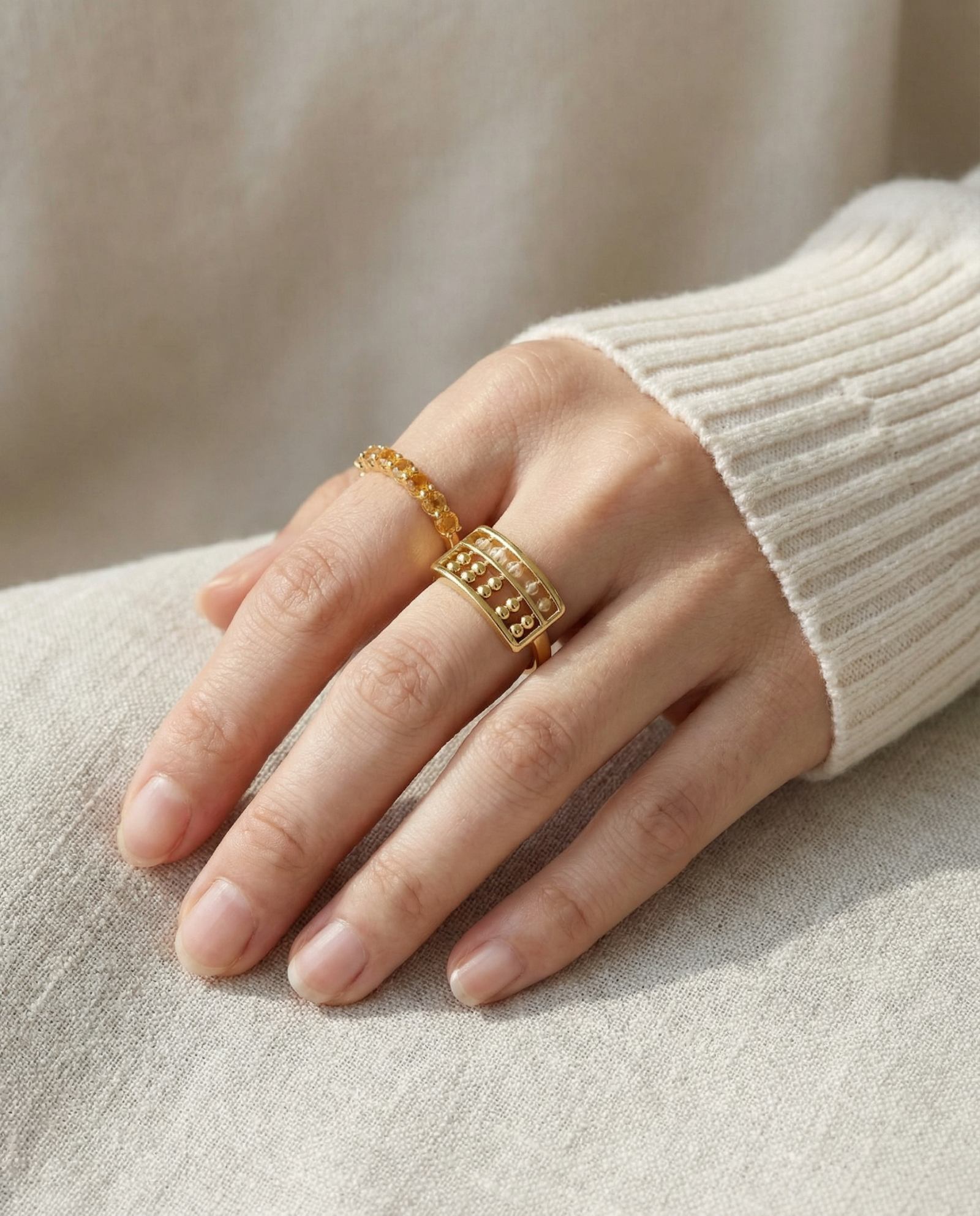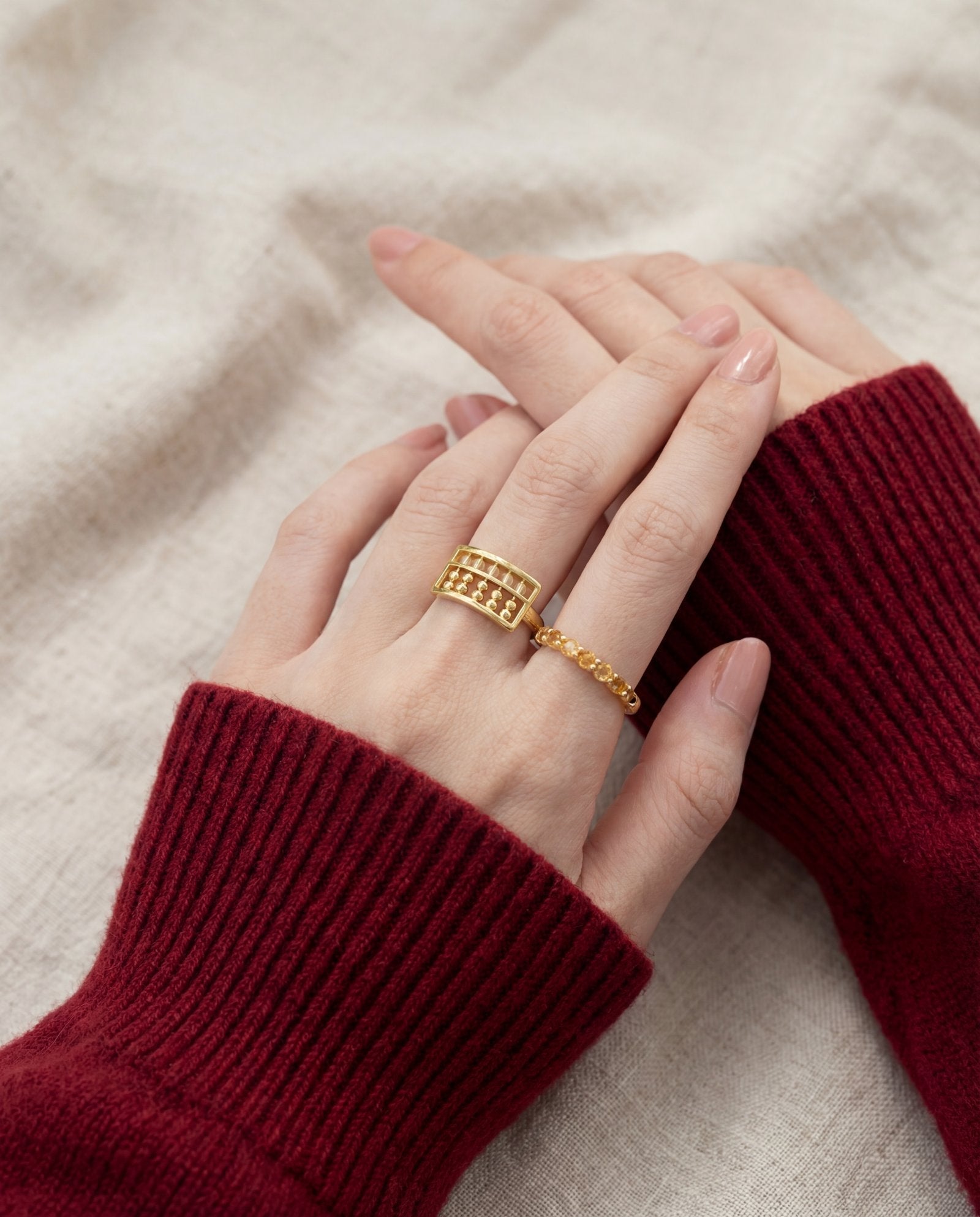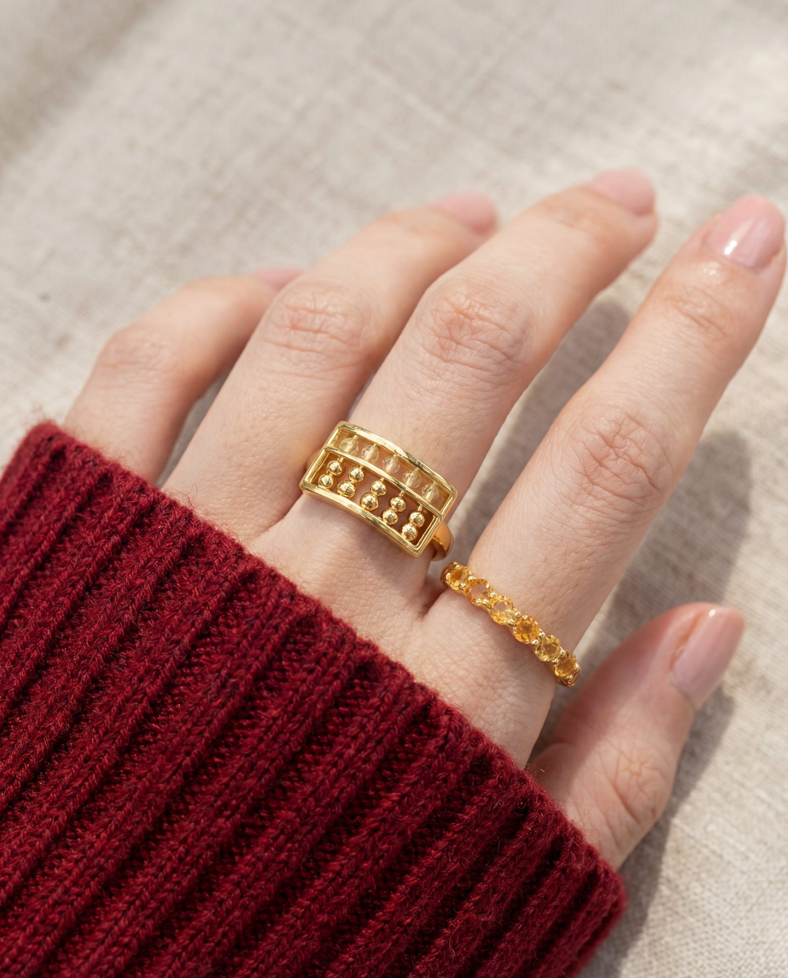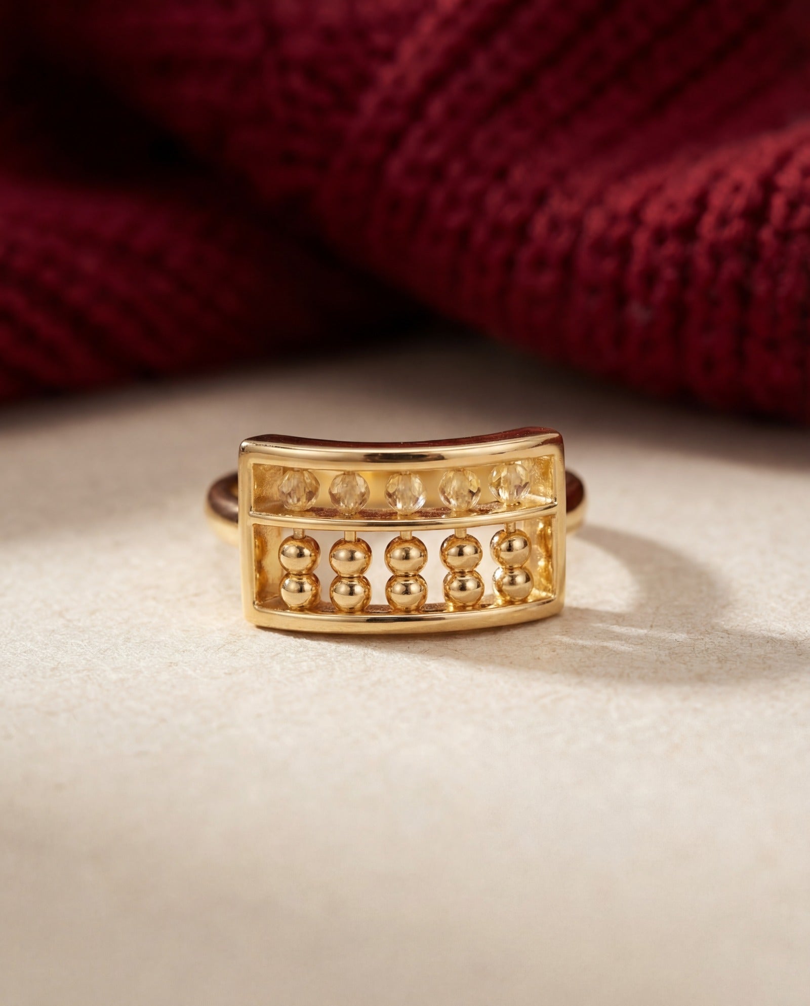 Add a touch of whimsy and elegance to your jewelry collection with our Golden Beads Abacus Ring. This piece is not just a ring, but a statement of playful sophistication, blending traditional abacus design with modern luxury.