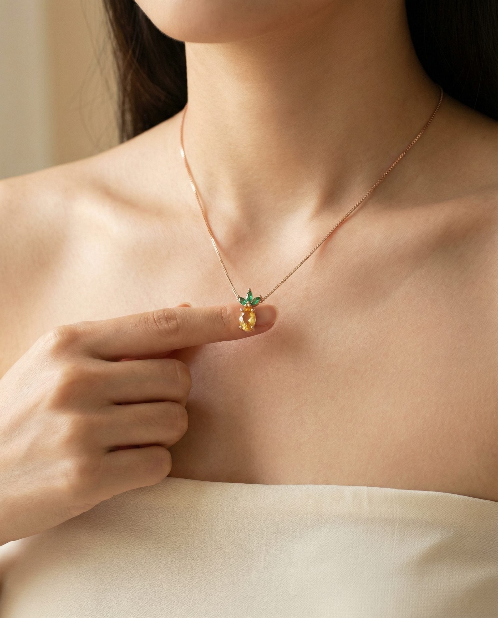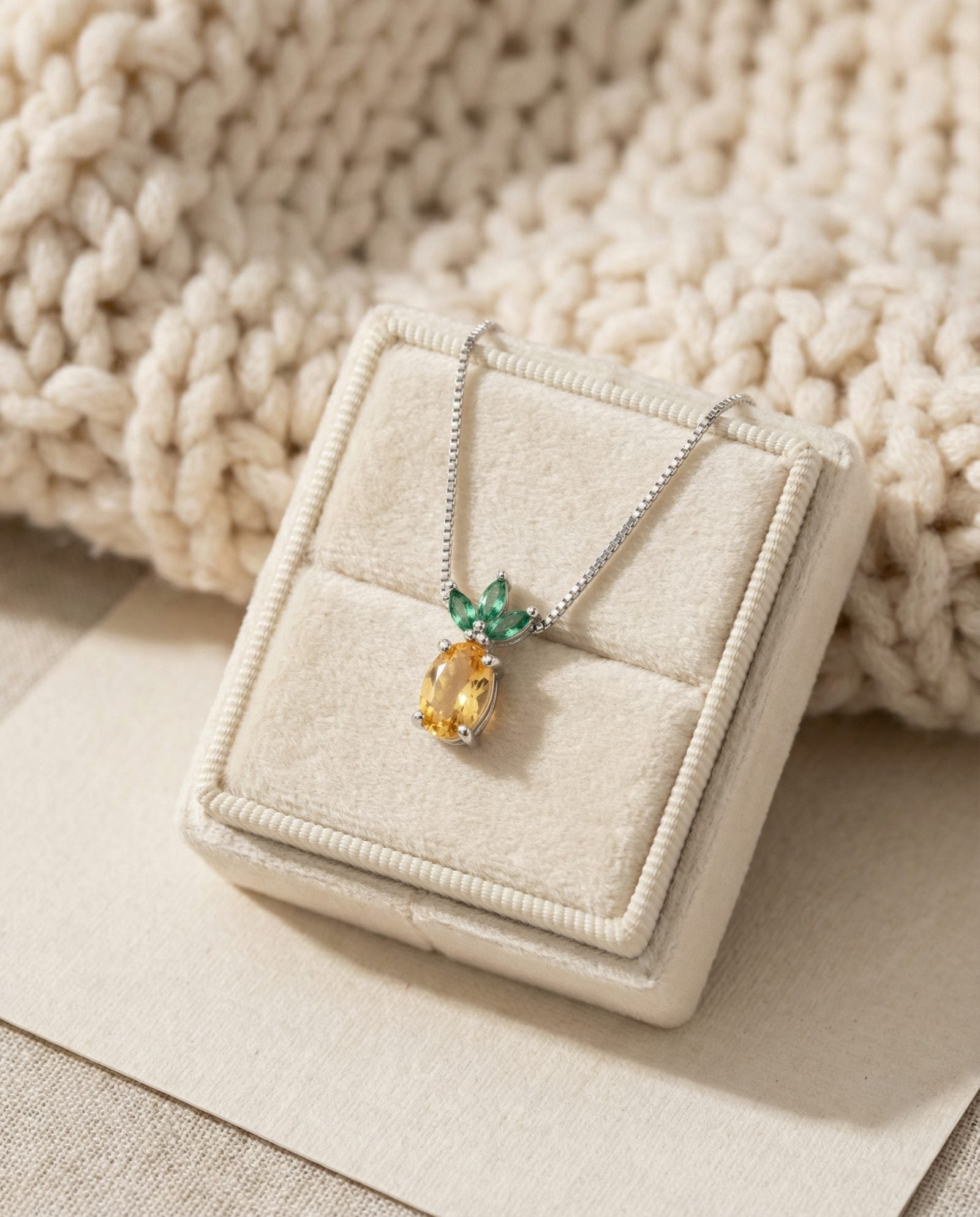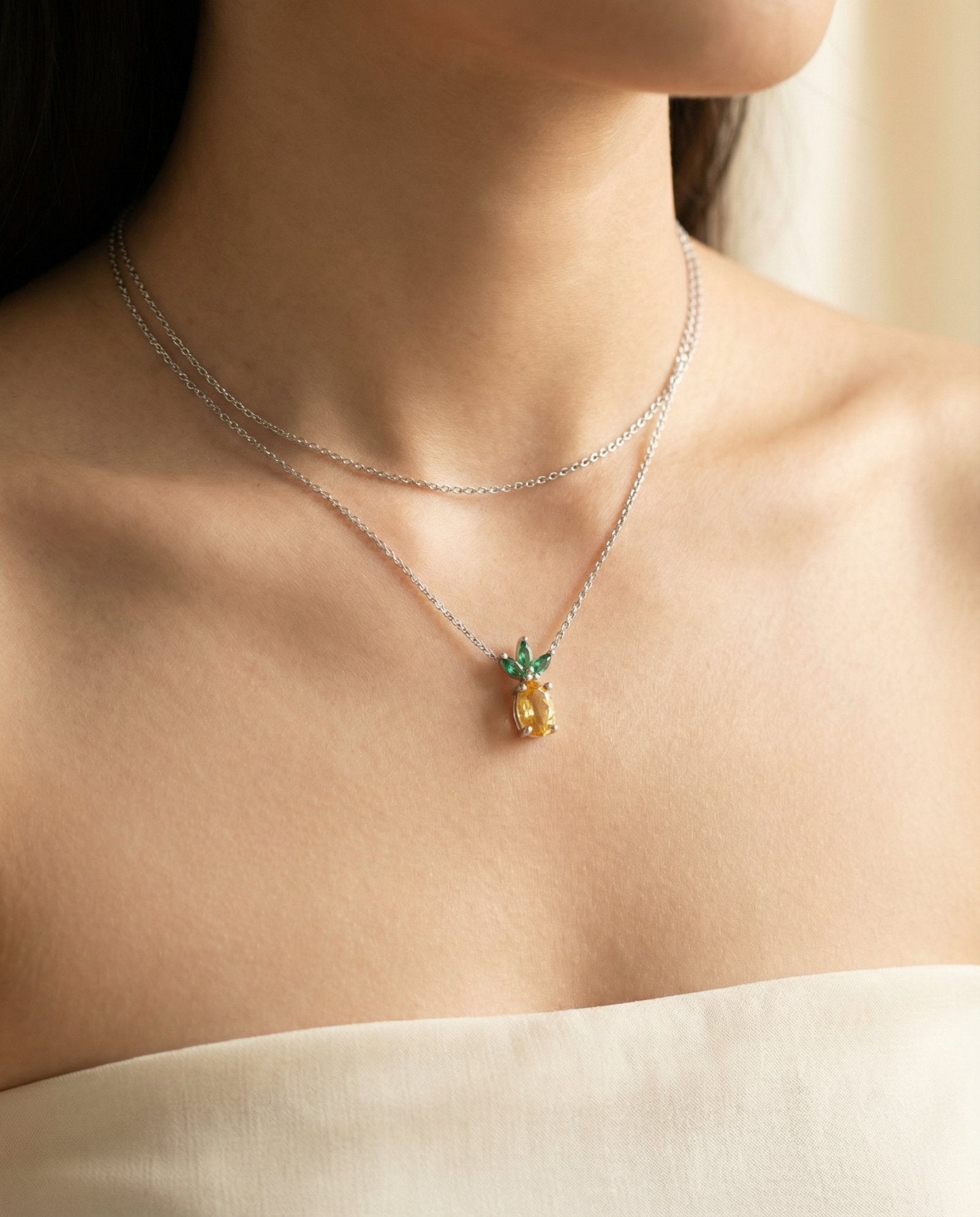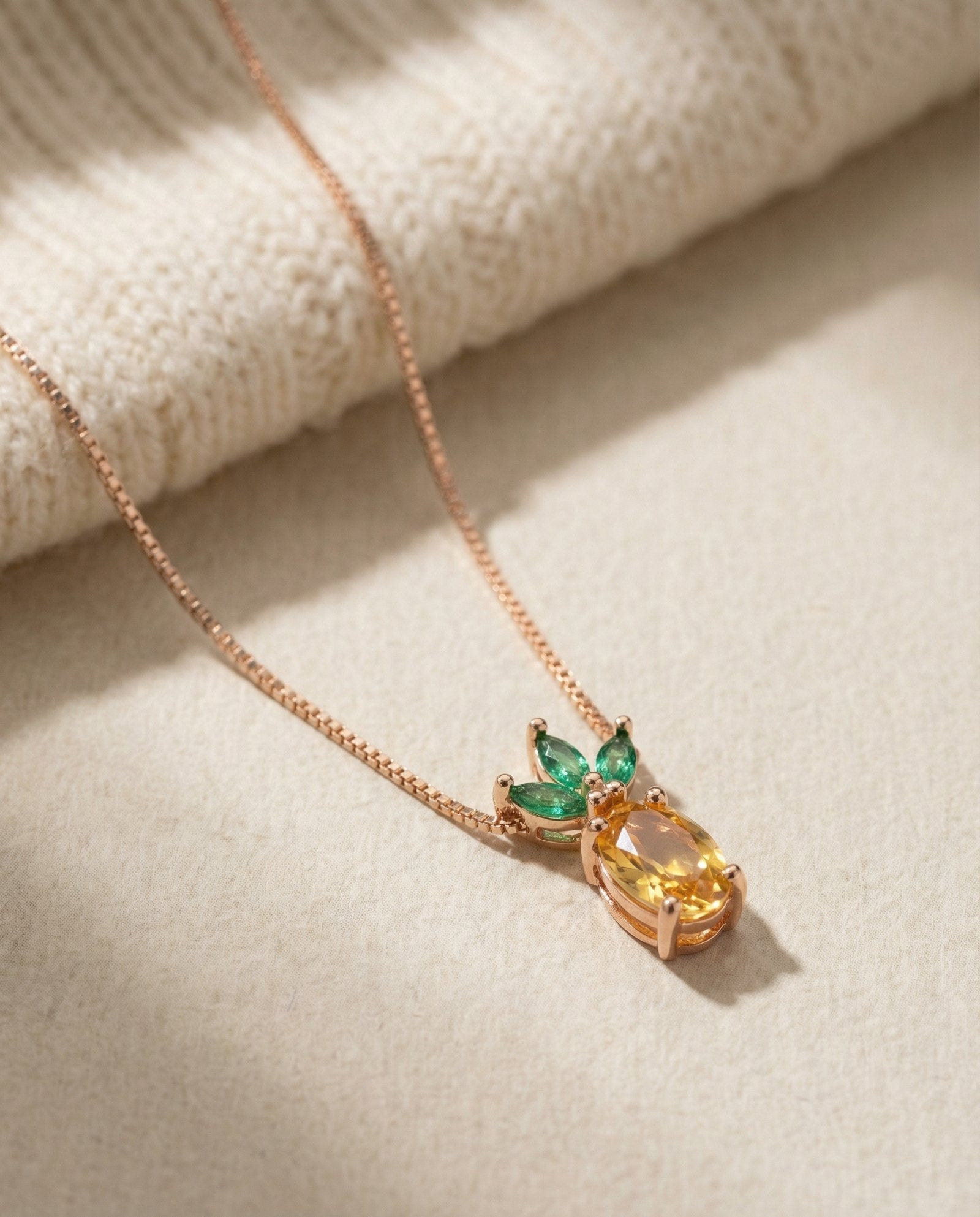 Add a playful yet elegant touch to your jewelry collection with this Pineapple Citrine Necklace. Designed to radiate warmth and charm, this necklace features a timeless design, making it perfect for both casual and formal occasions.