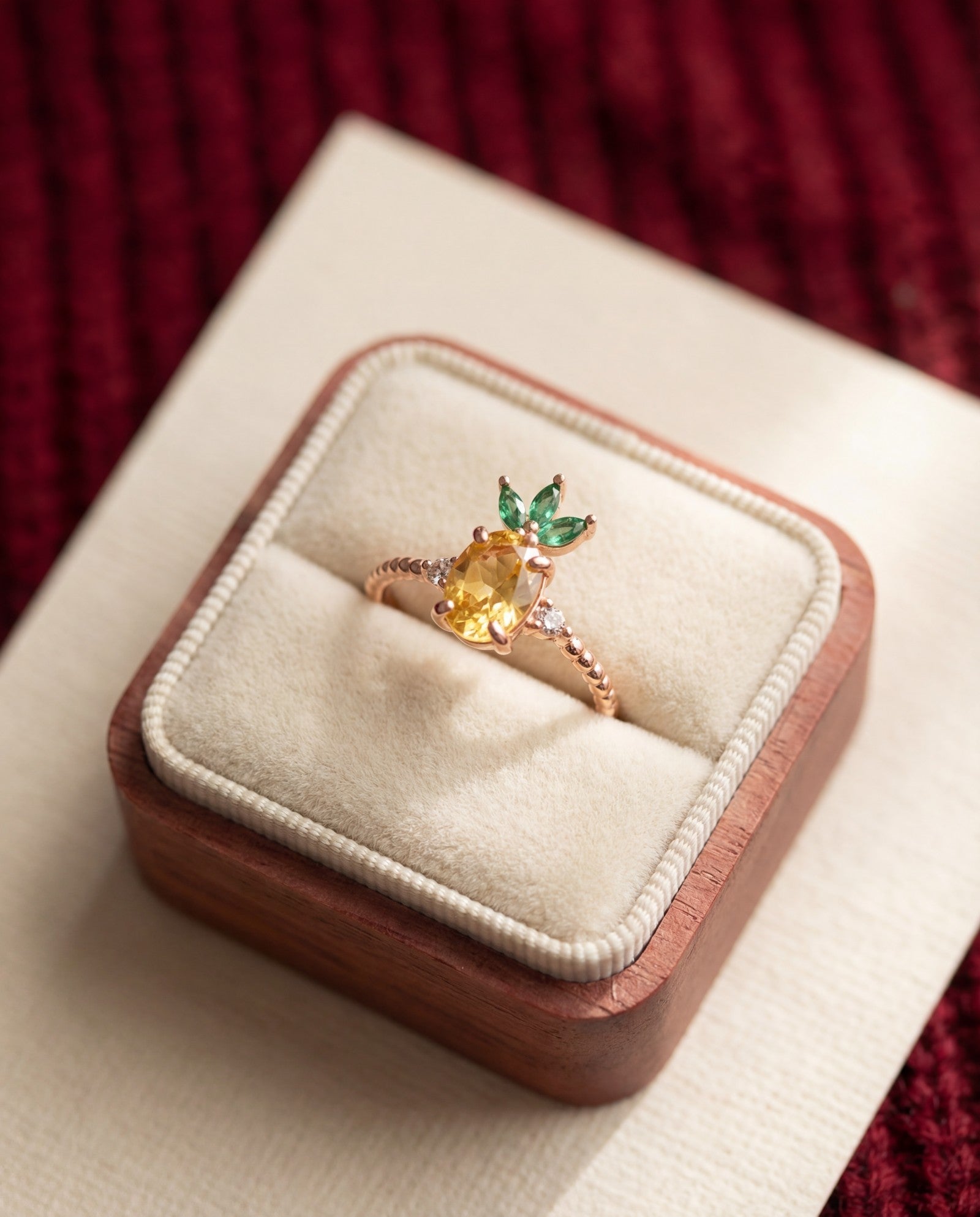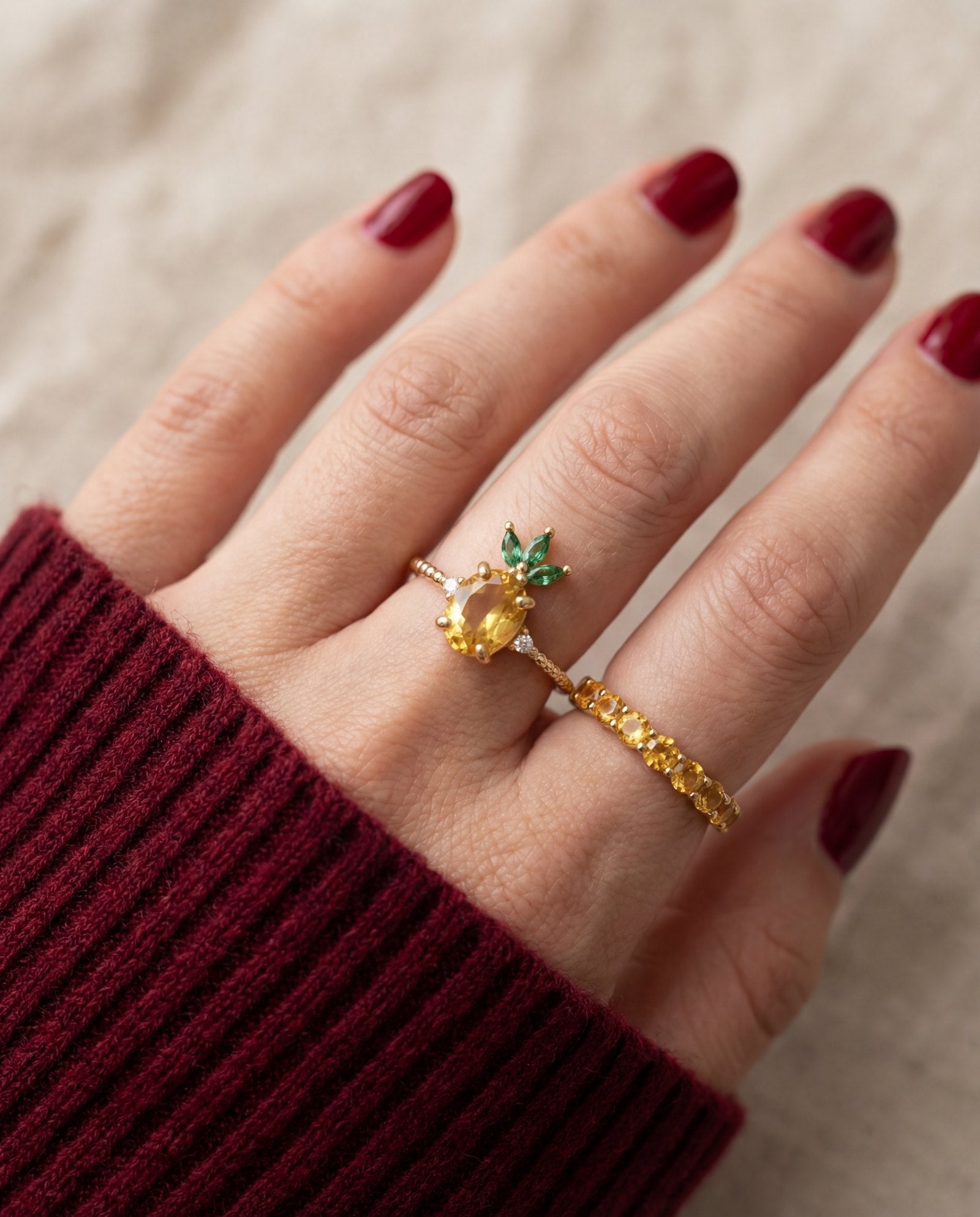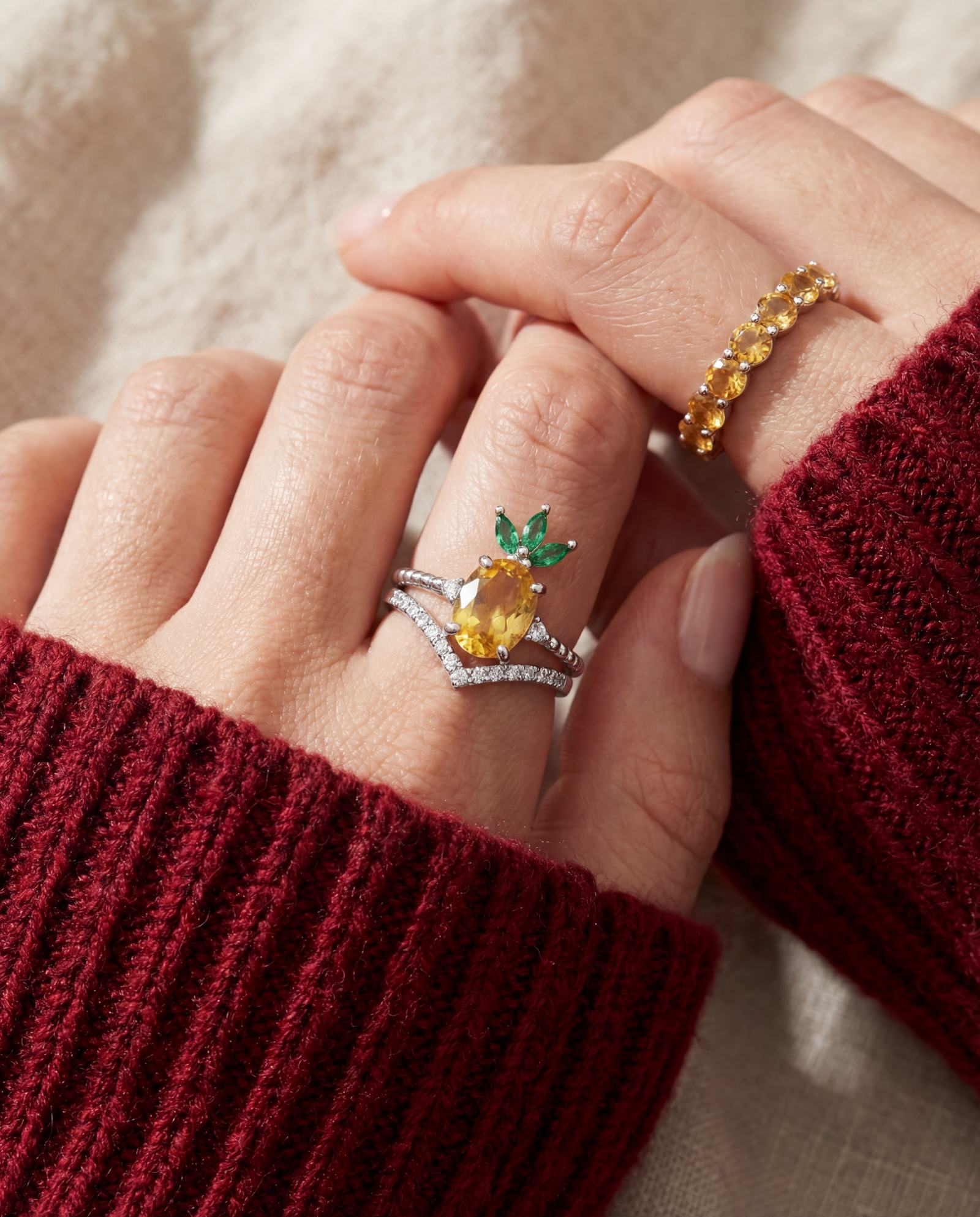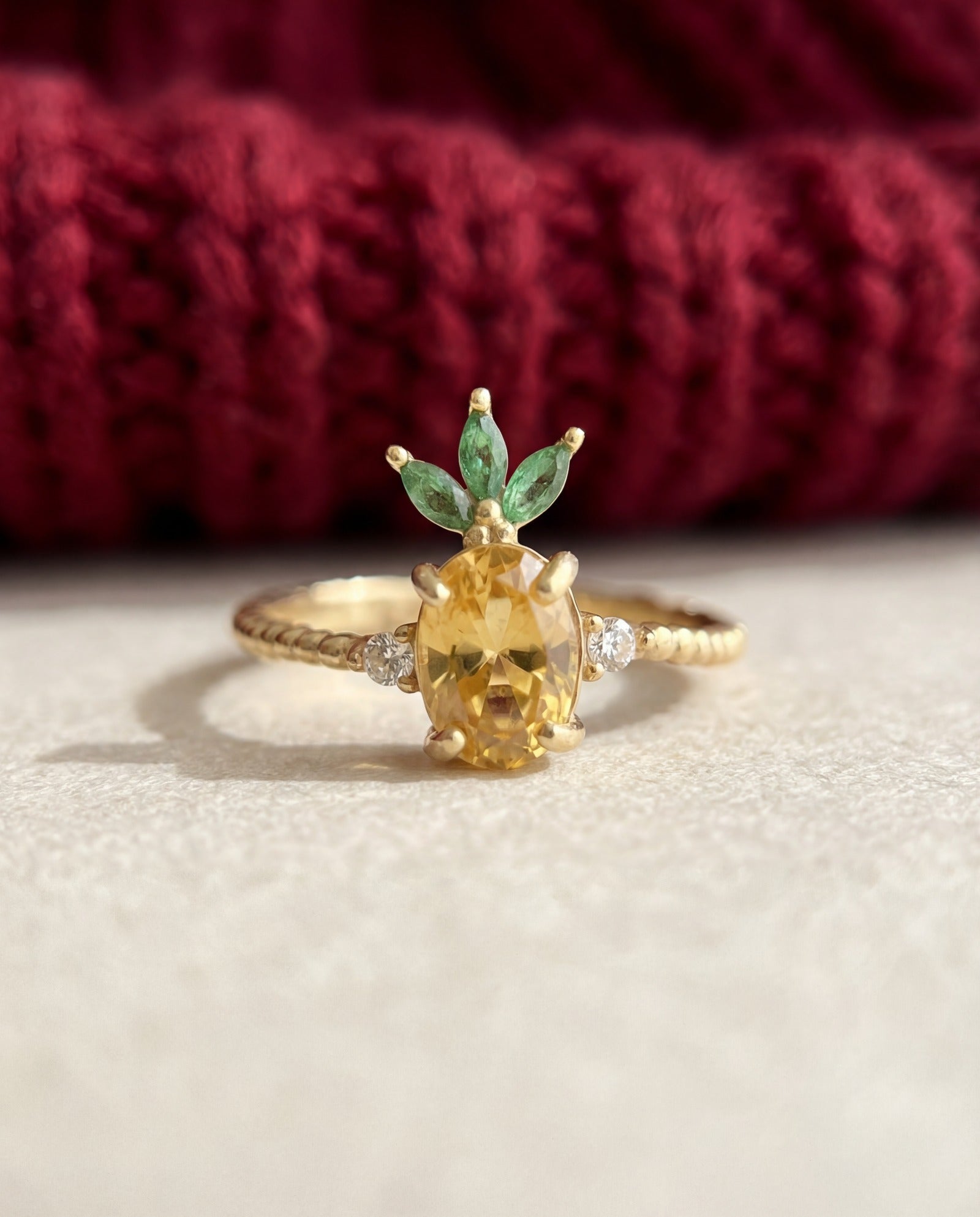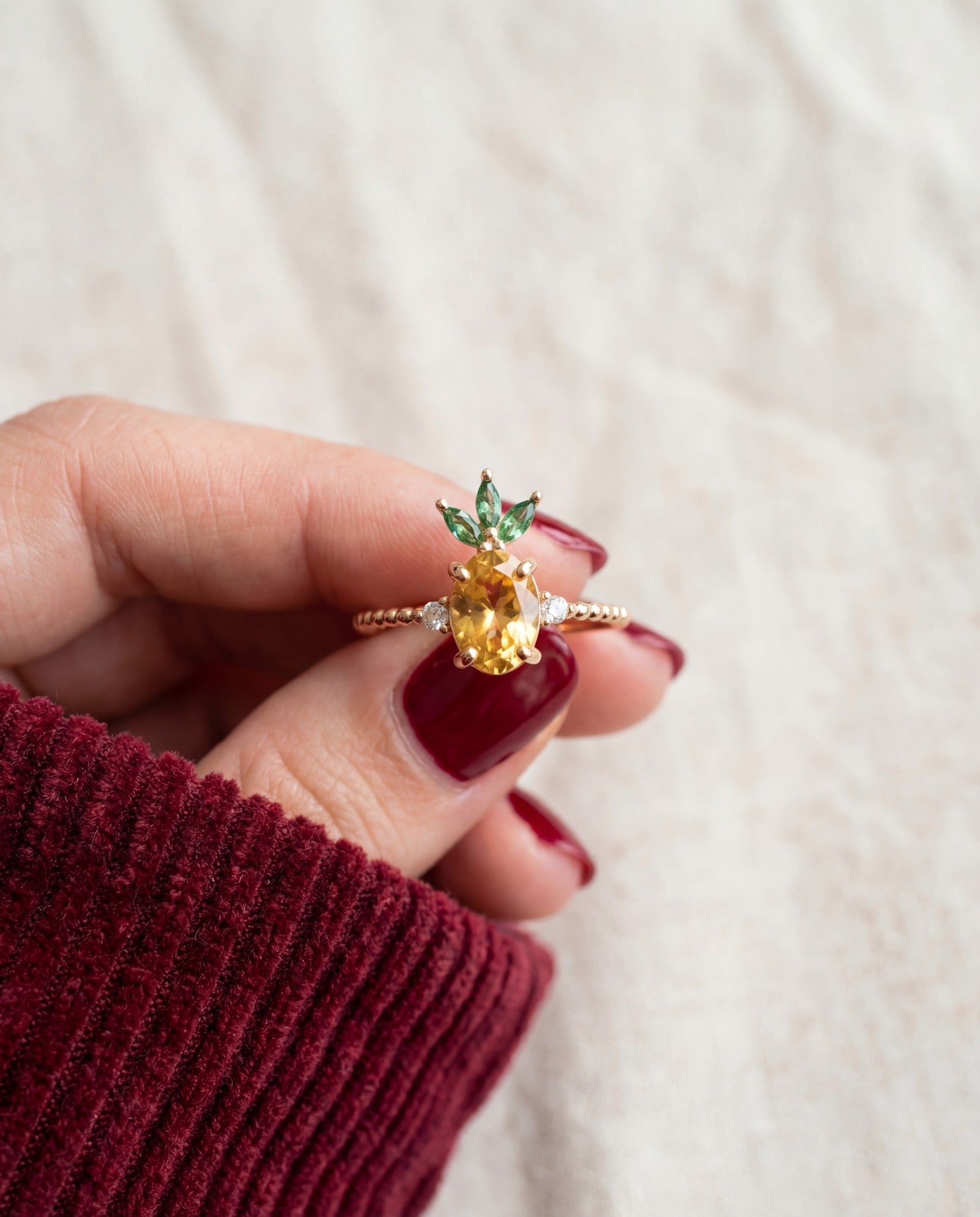 Its lightweight design ensures comfort for everyday wear, while its bold aesthetic makes it perfect for dressing up. Whether for yourself or as a thoughtful gift, the Pineapple Citrine Ring is a true conversation starter that blends fun and sophistication effortlessly.