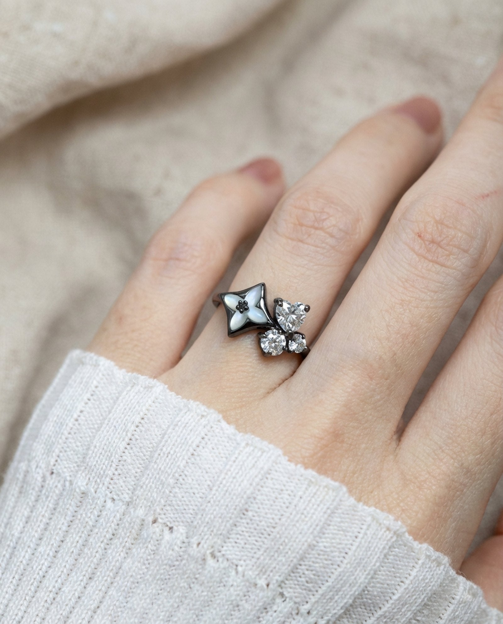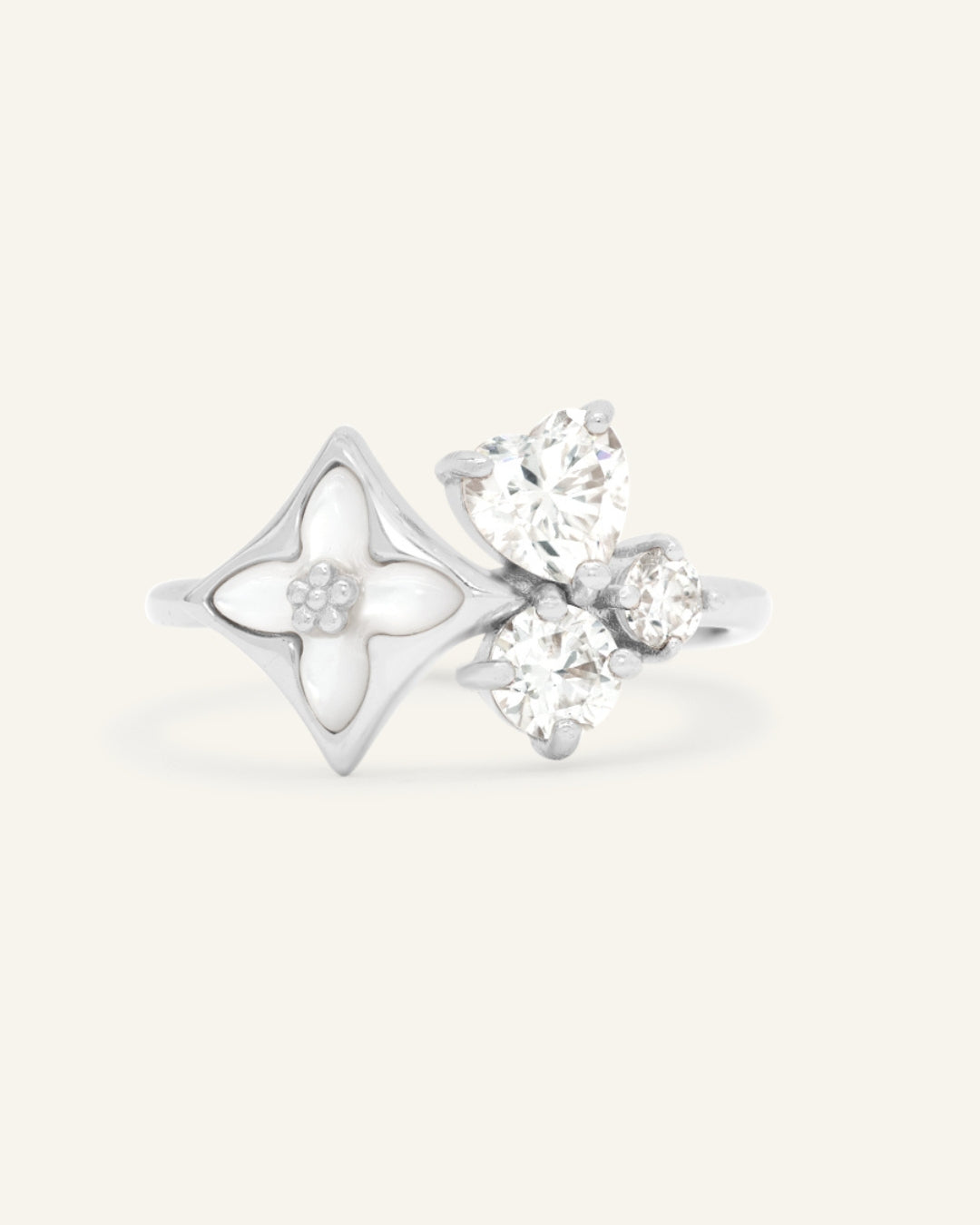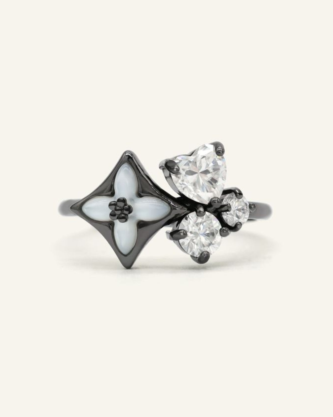 • Stone size: ~3 mm & ~4 mm Round Moisssanite, ~5 mm Heart Moissanite, ~7.6 mm