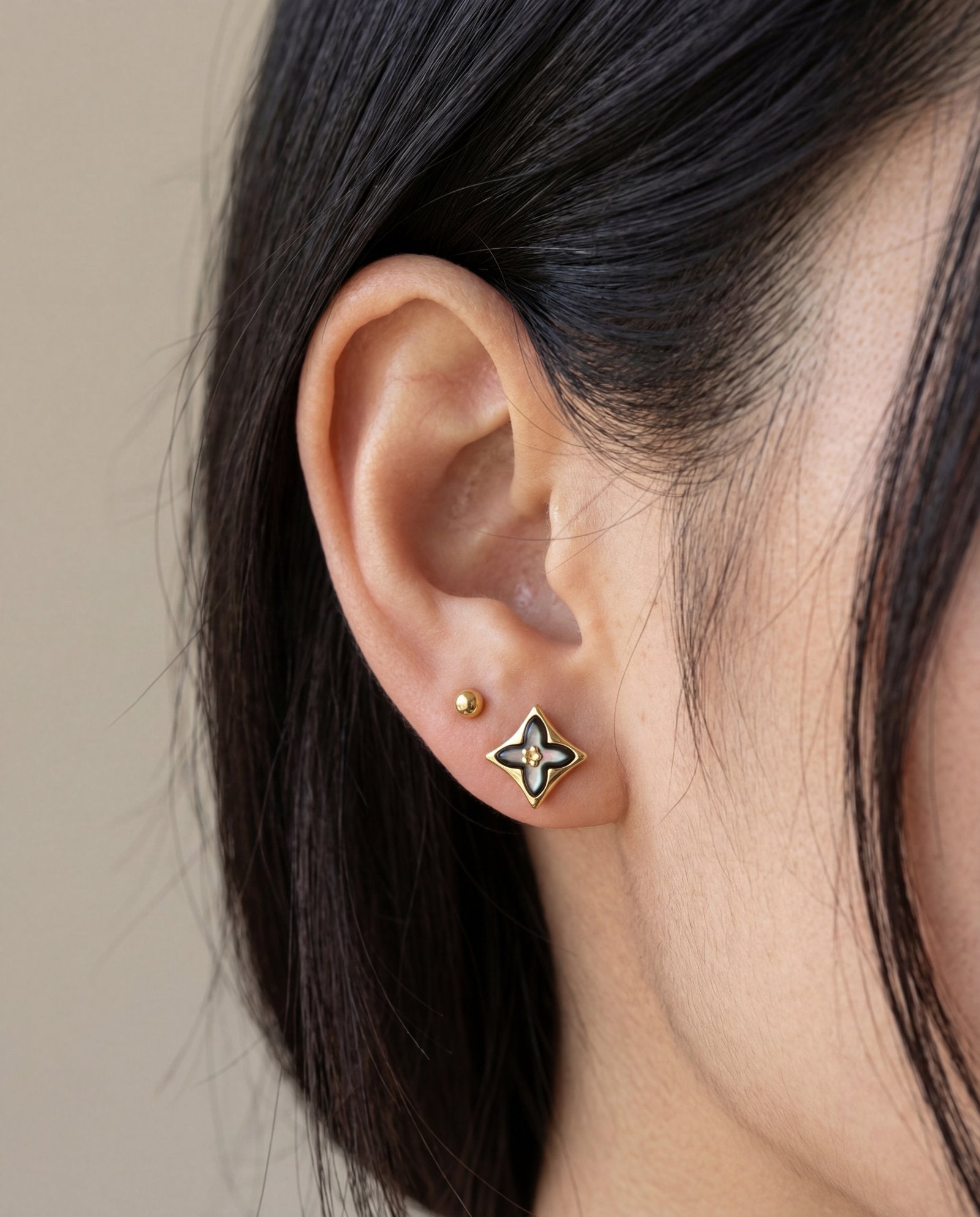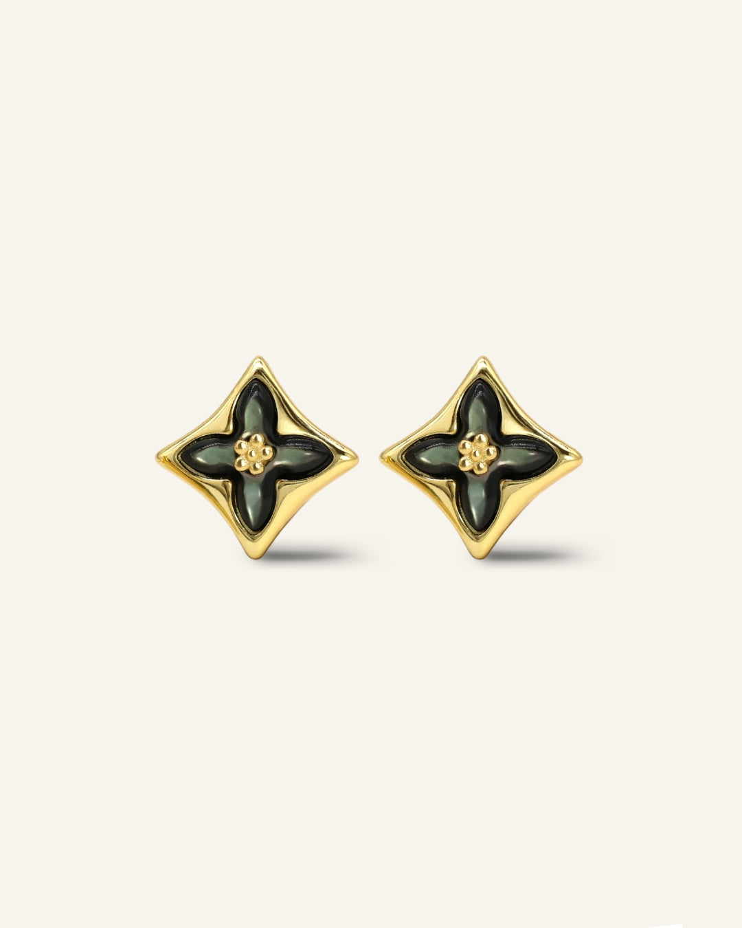 Luck meets bloom — Clover Monogram Ear Studs with a daisy twist in elegant black mother of pearl.