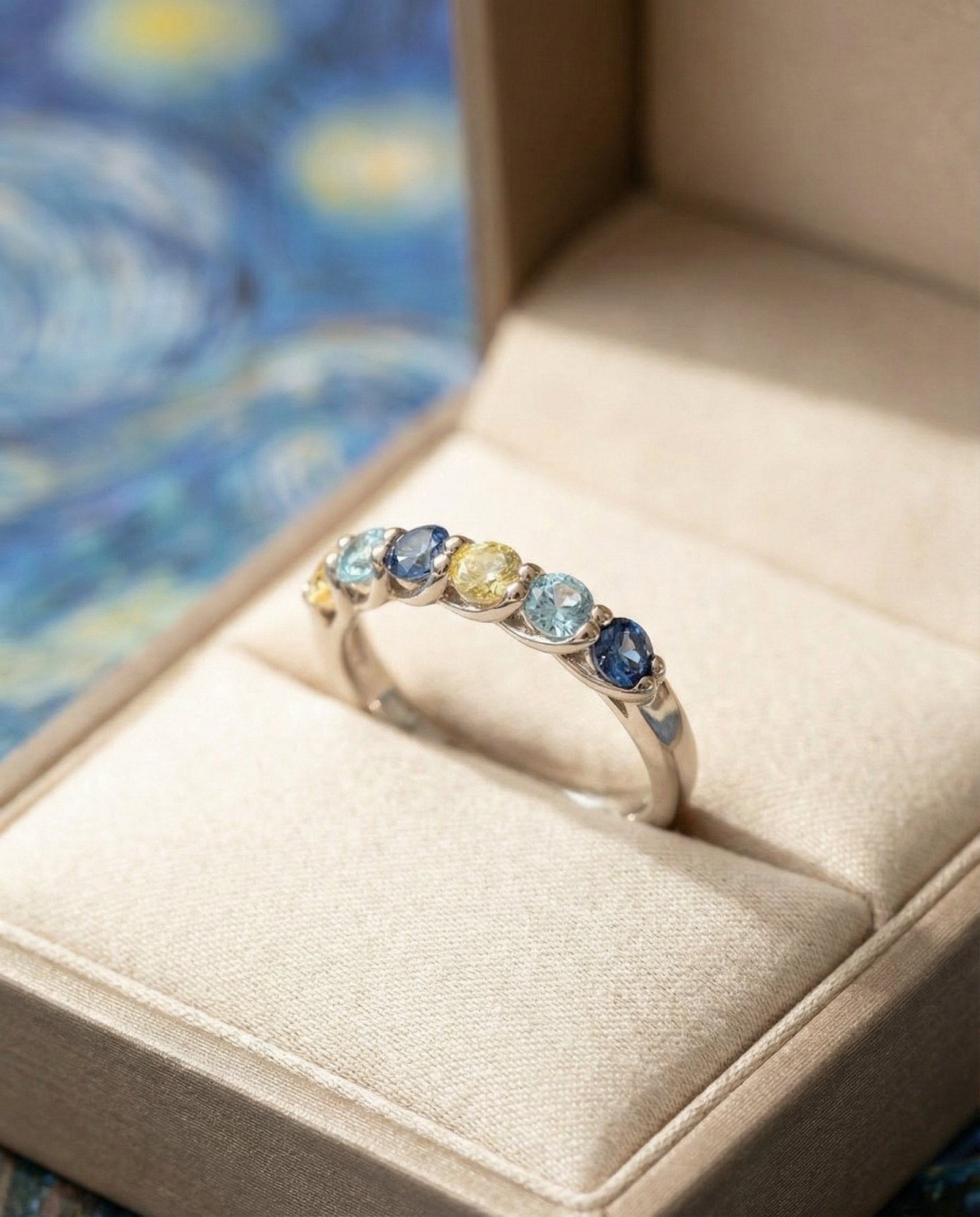 Art meets eternity 🌟Our Entwine Eternity Band, inspired by Van Gogh's Starry Night, captures the swirling beauty of the night sky in every twist.