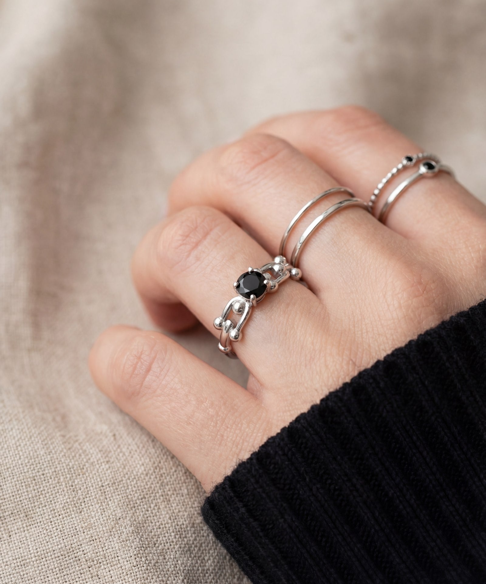 Lock Link Ring (Black Spinel) by Elate
