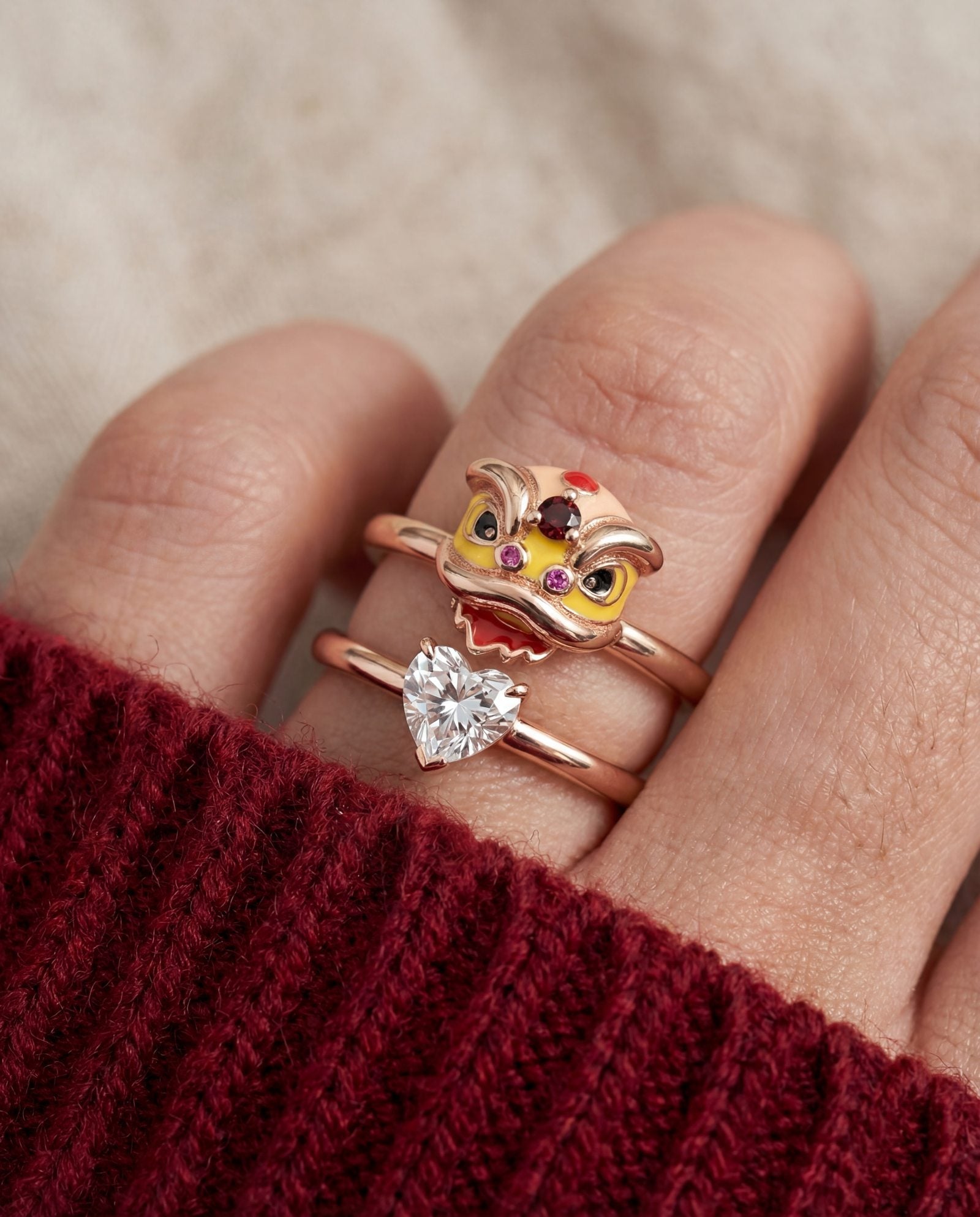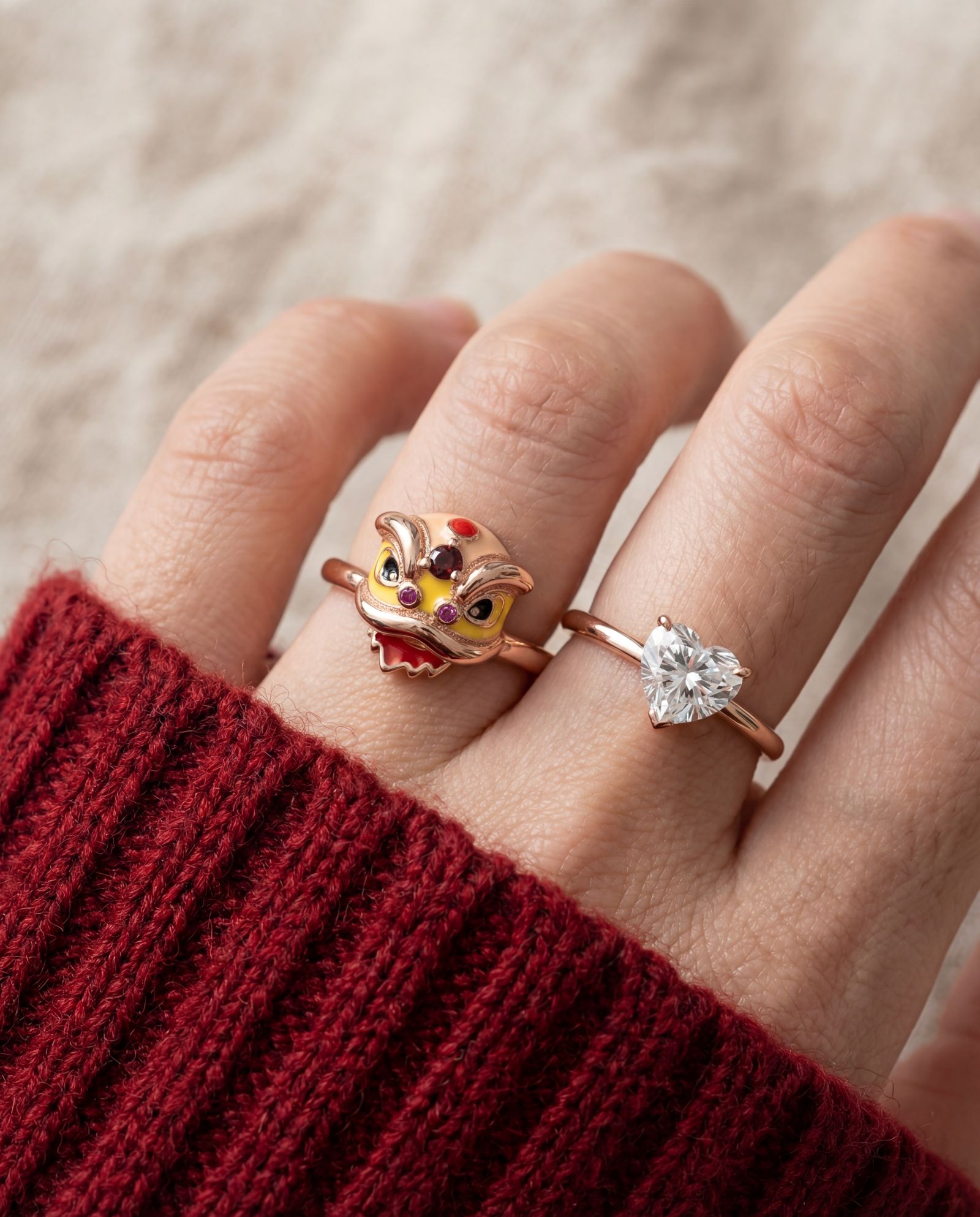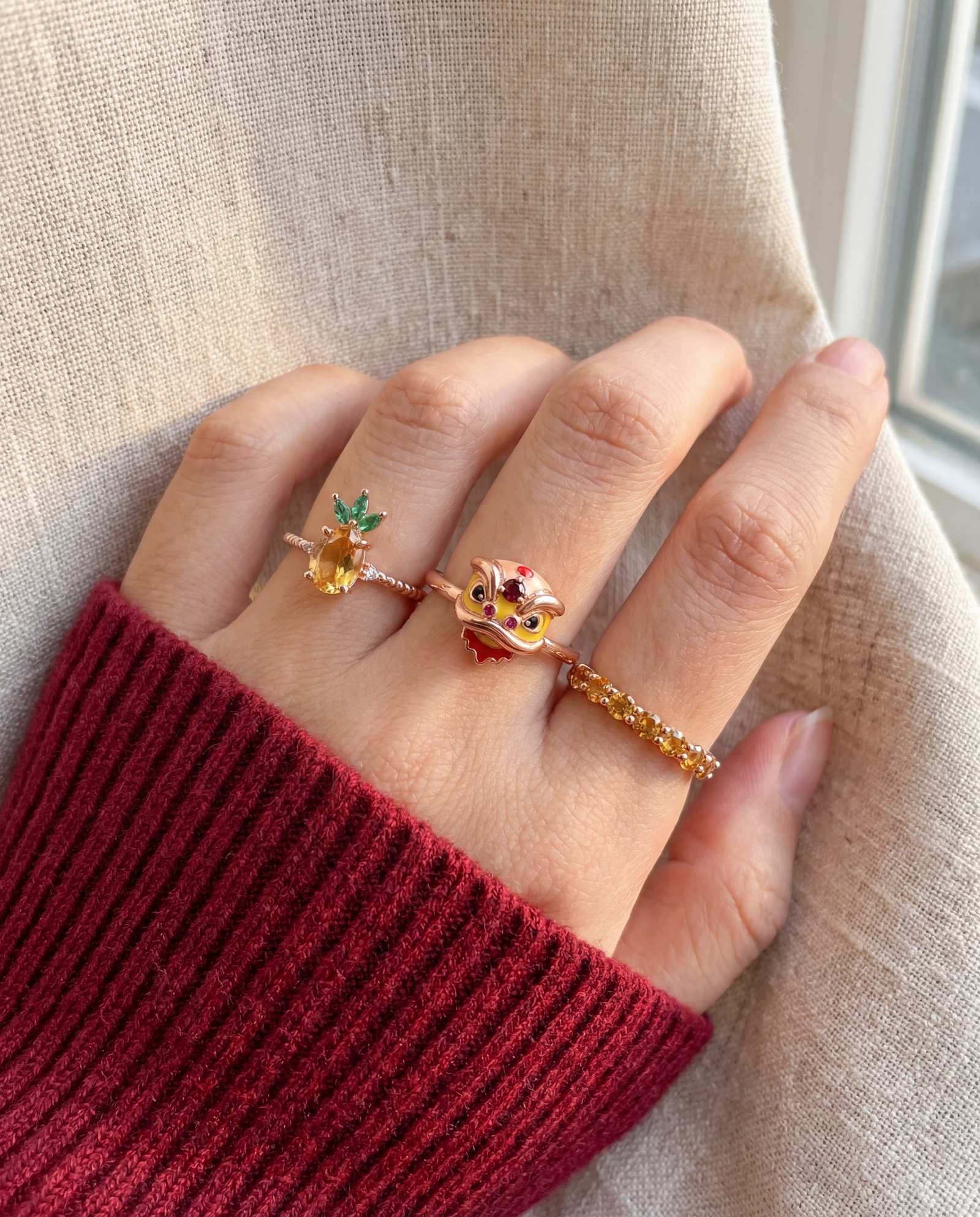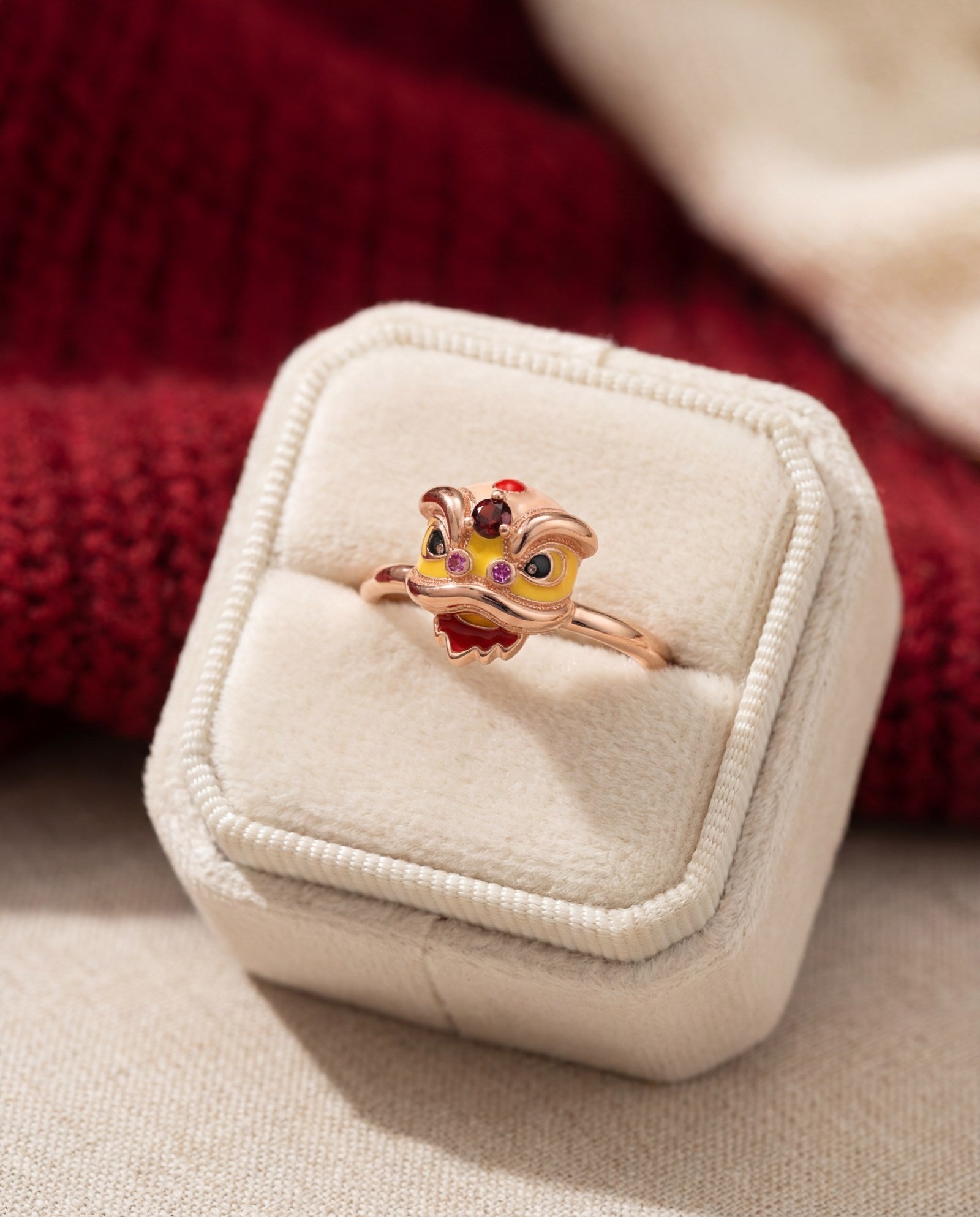 Celebrate tradition and artistry with our Lion Dance Garnet Ring, a whimsical design inspired by the vibrant Chinese Lion Dance. This playful piece combines cultural charm with exquisite craftsmanship, featuring an interactive lion head that opens and closes its mouth for a touch of fun and interactivity.