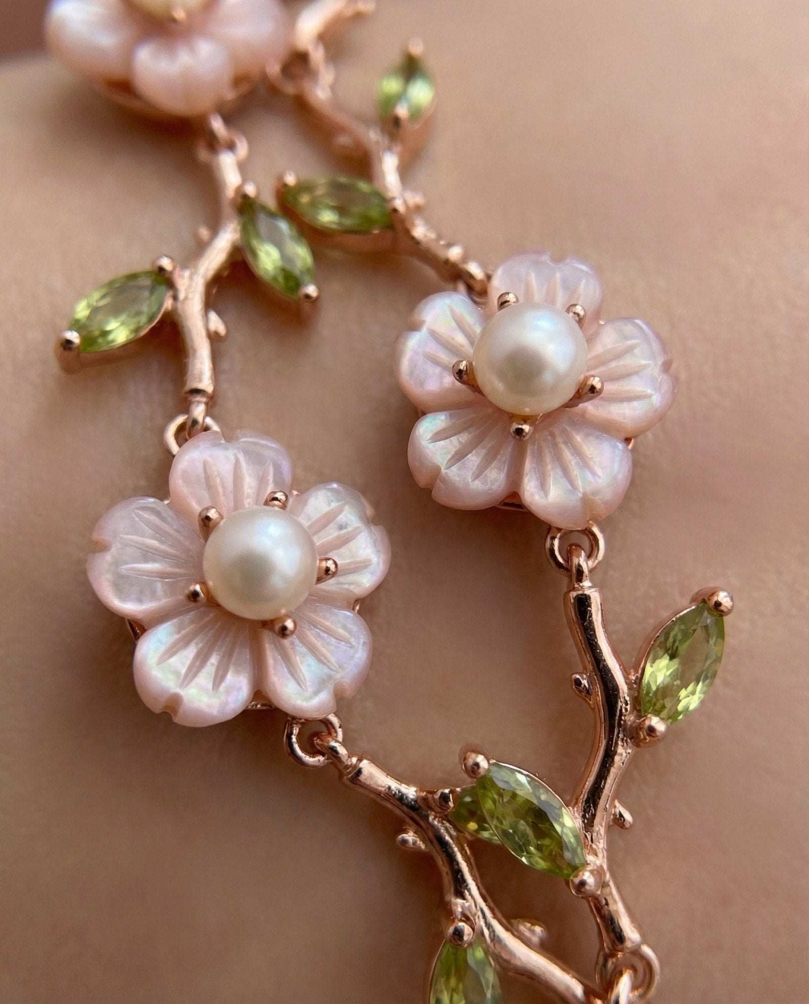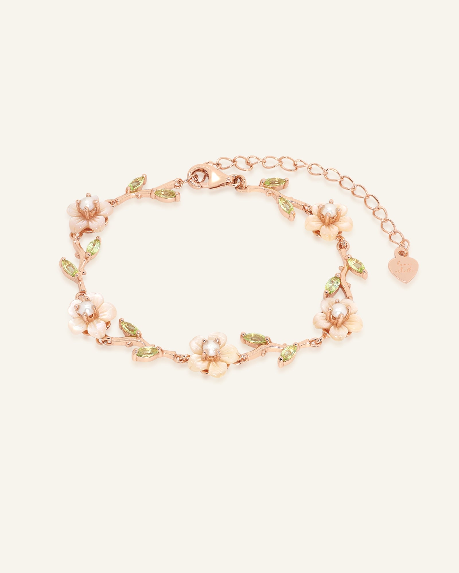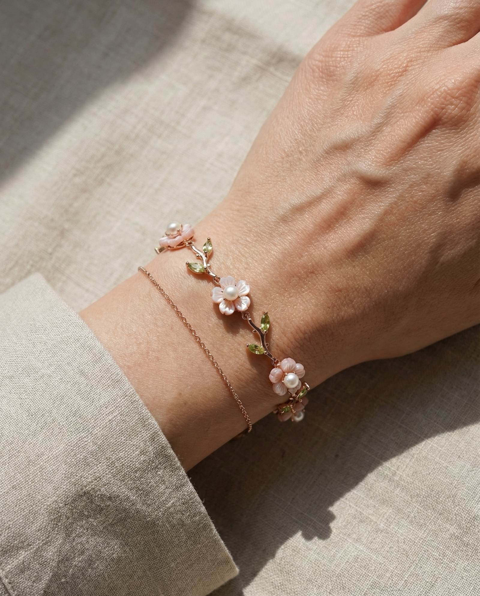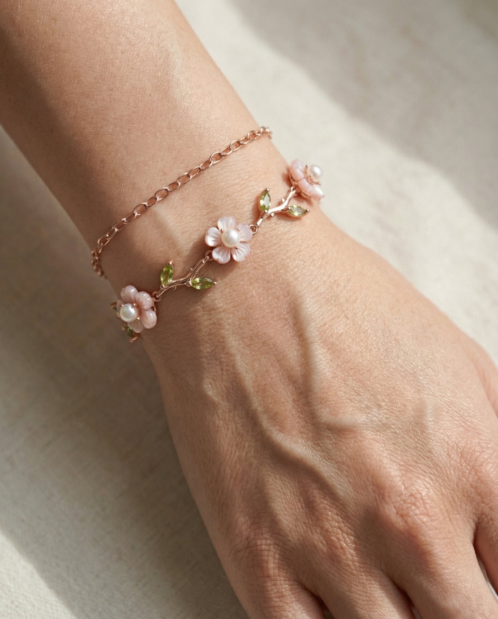 Capture the fleeting beauty of cherry blossoms with our Sakura Twig Bracelet, a delicate design inspired by the elegance of spring. Crafted with natural hand-carved shell, peridot and freshwater pearls, this bracelet brings a soft, poetic glow to the wrist. 🌸✨