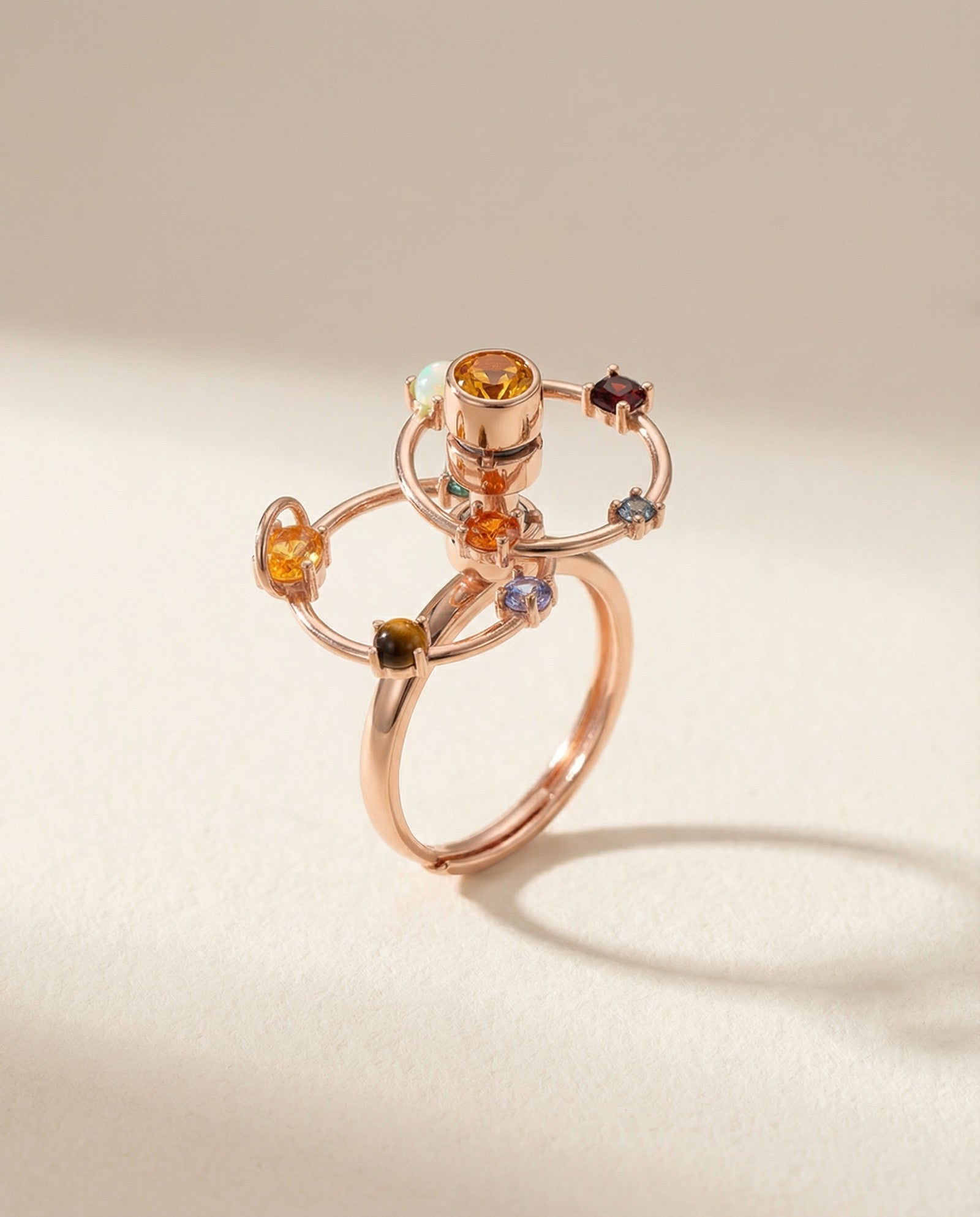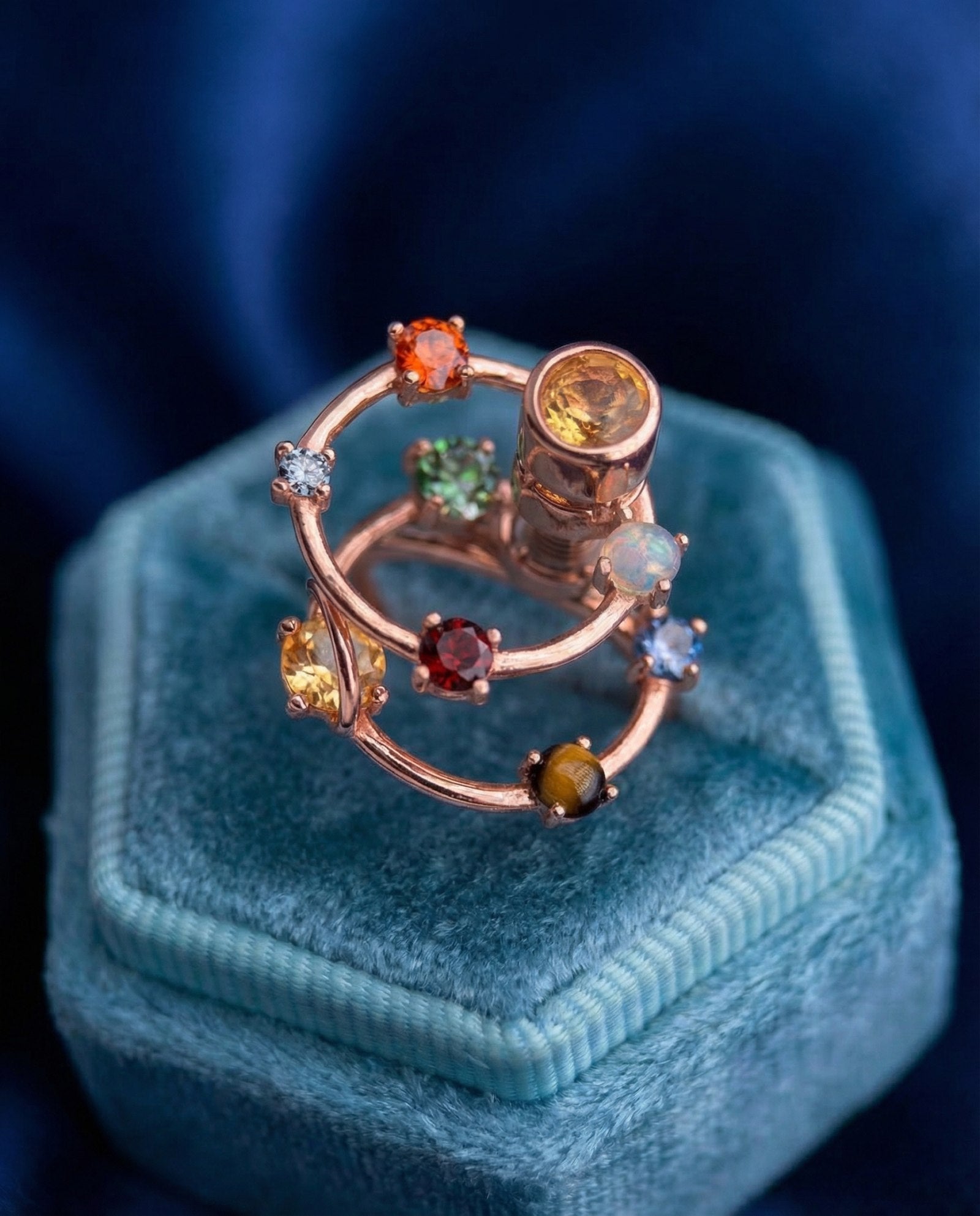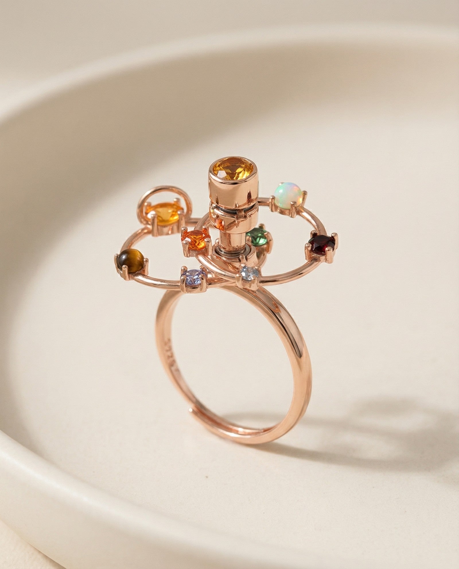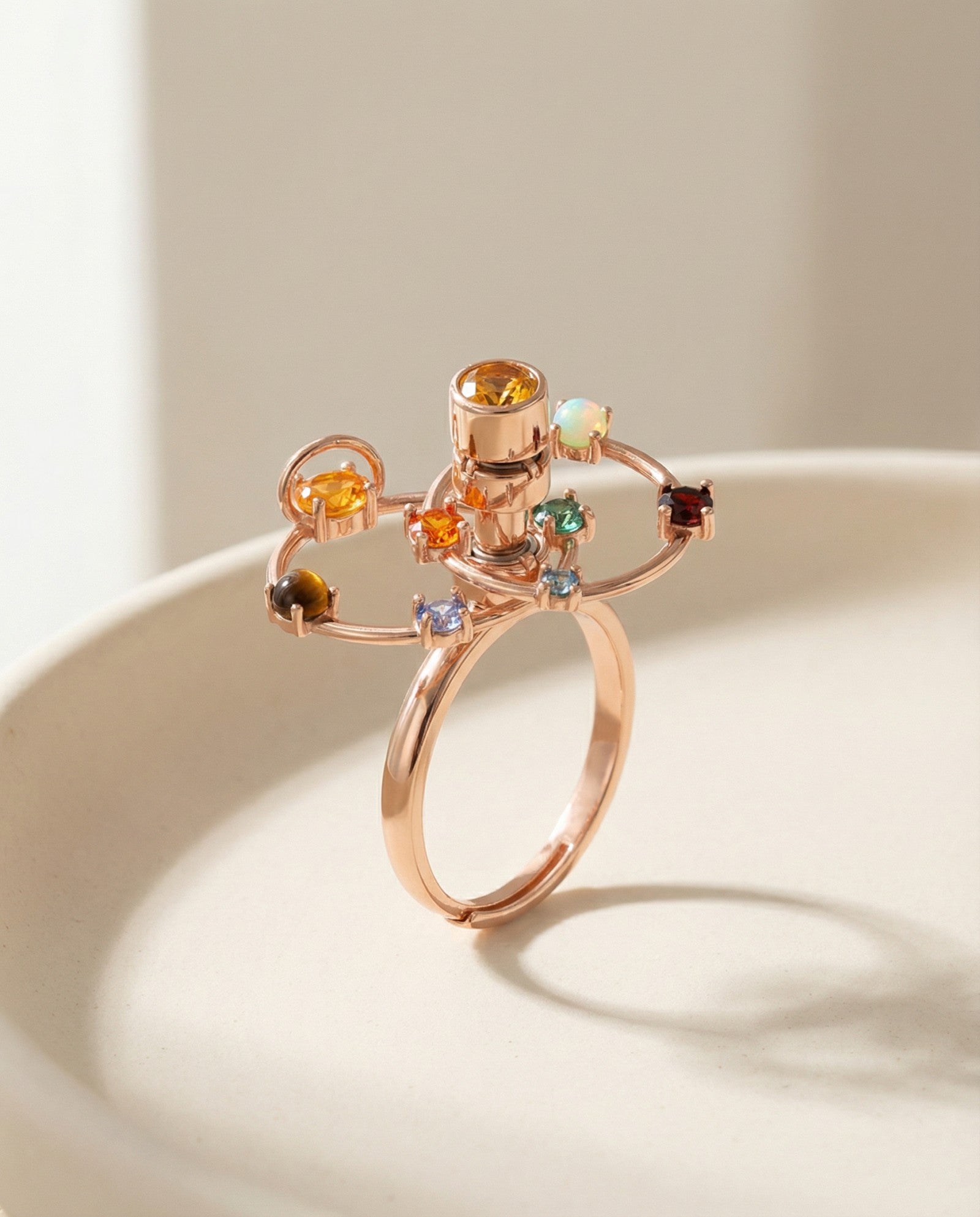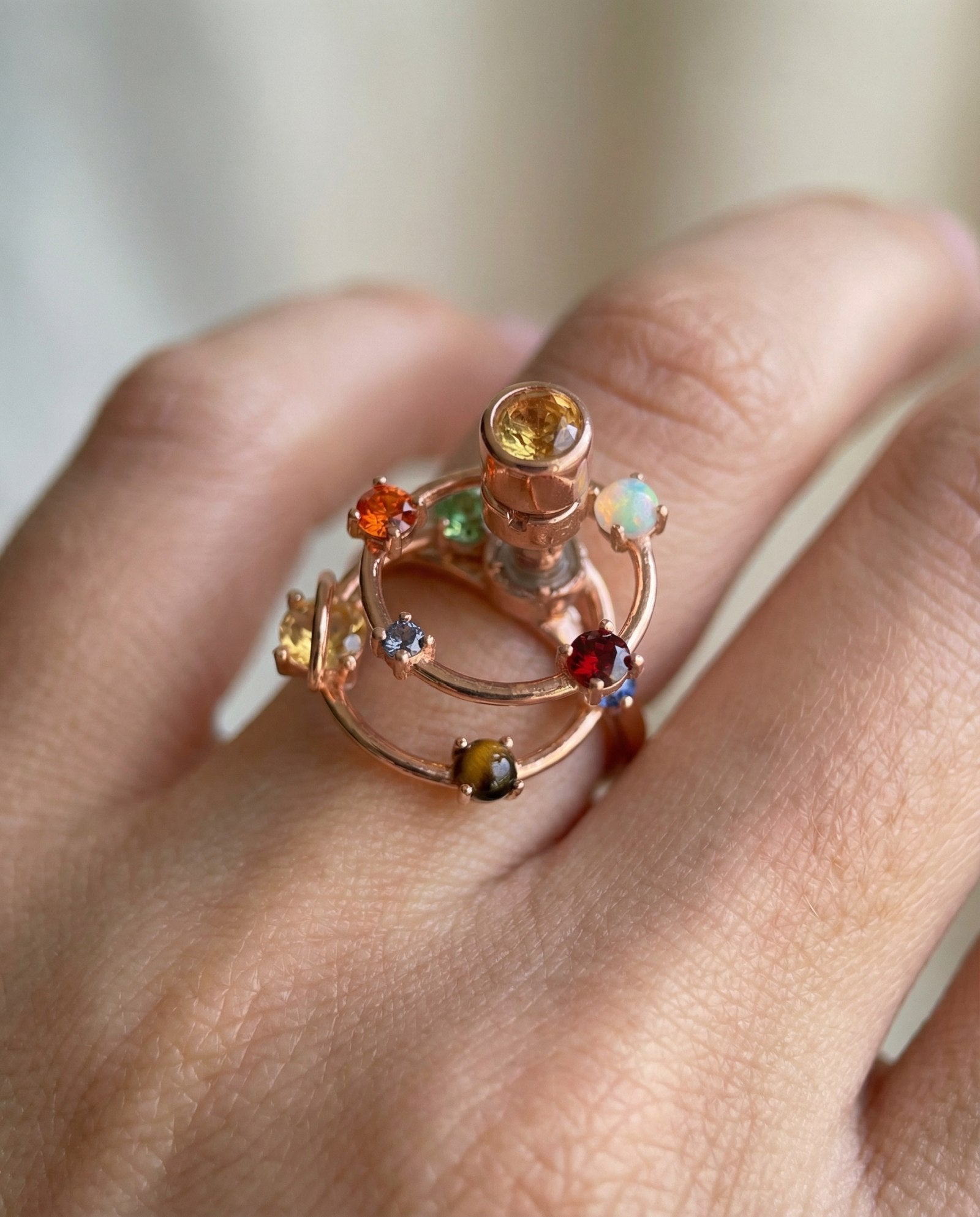 Explore the universe on your finger 🌌— our Cosmic Orbital Ring features all the planets 🌍🪐🌕 orbiting around the sun, and yes, it spins! A galaxy of wonder at your fingertips.