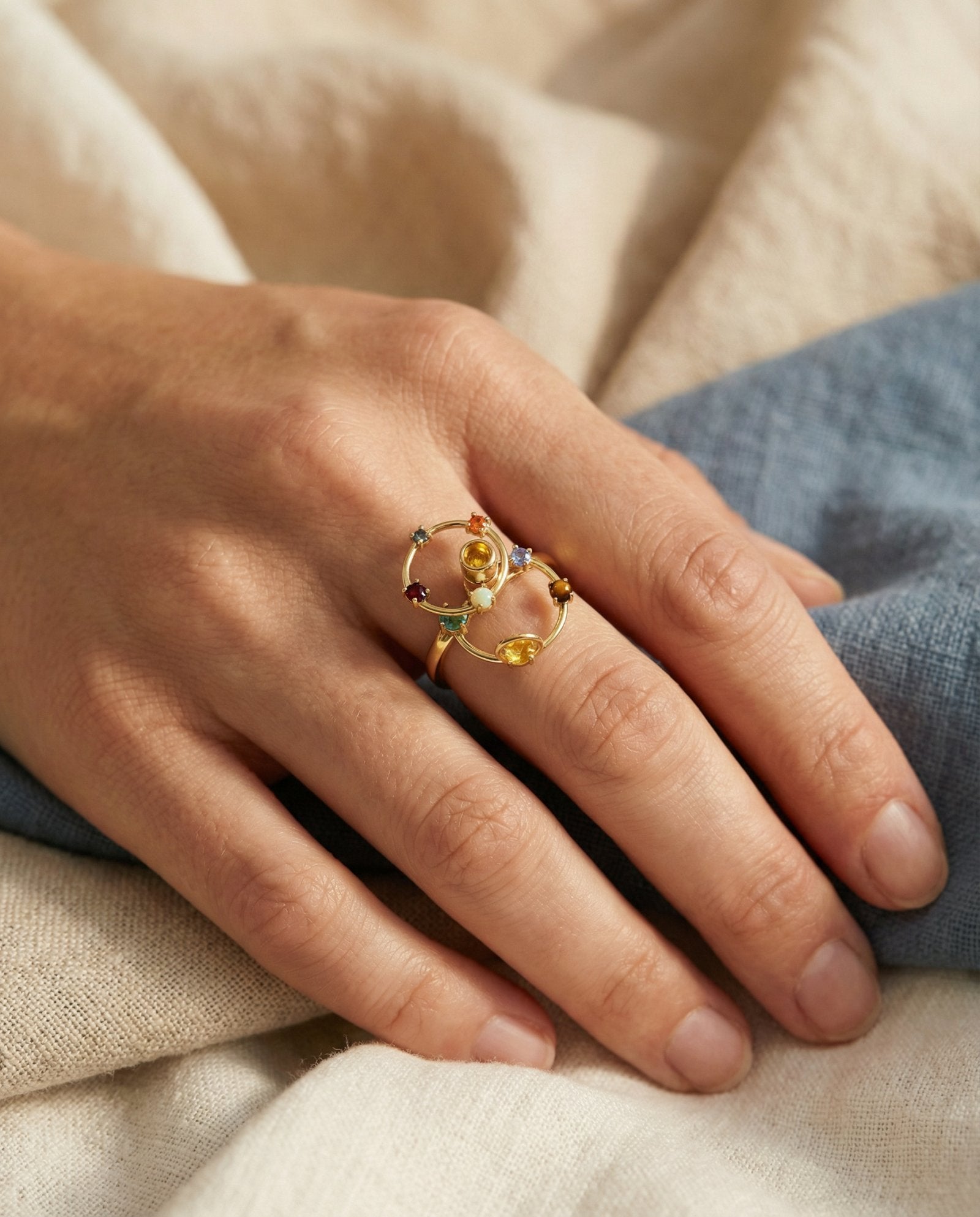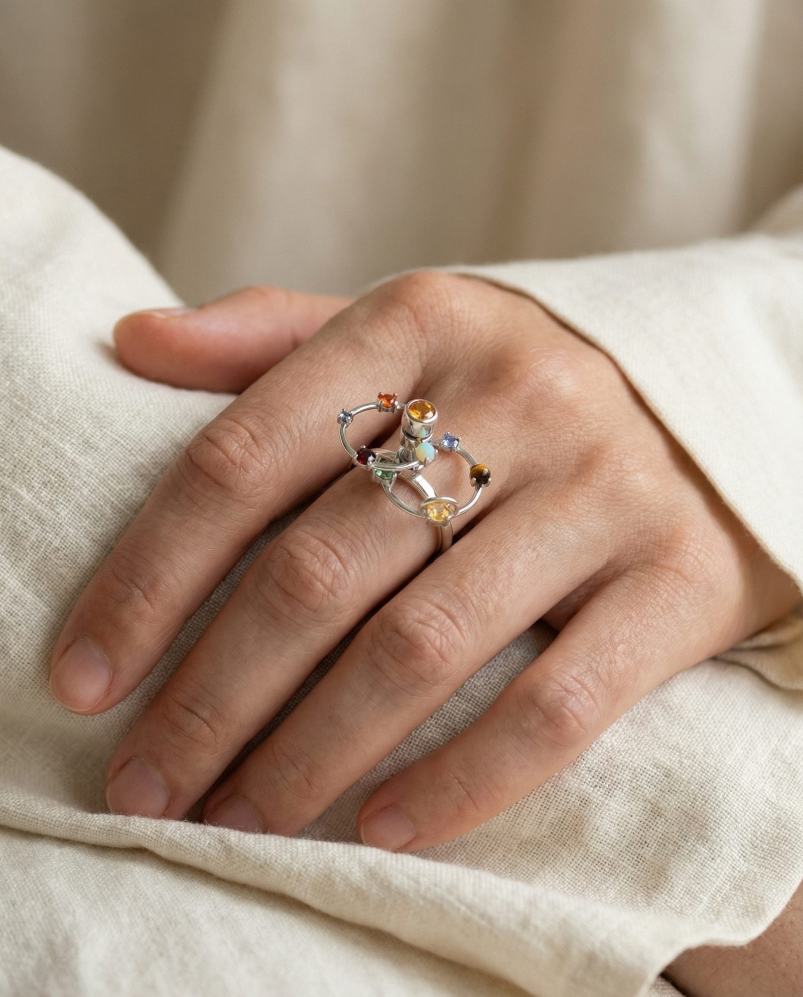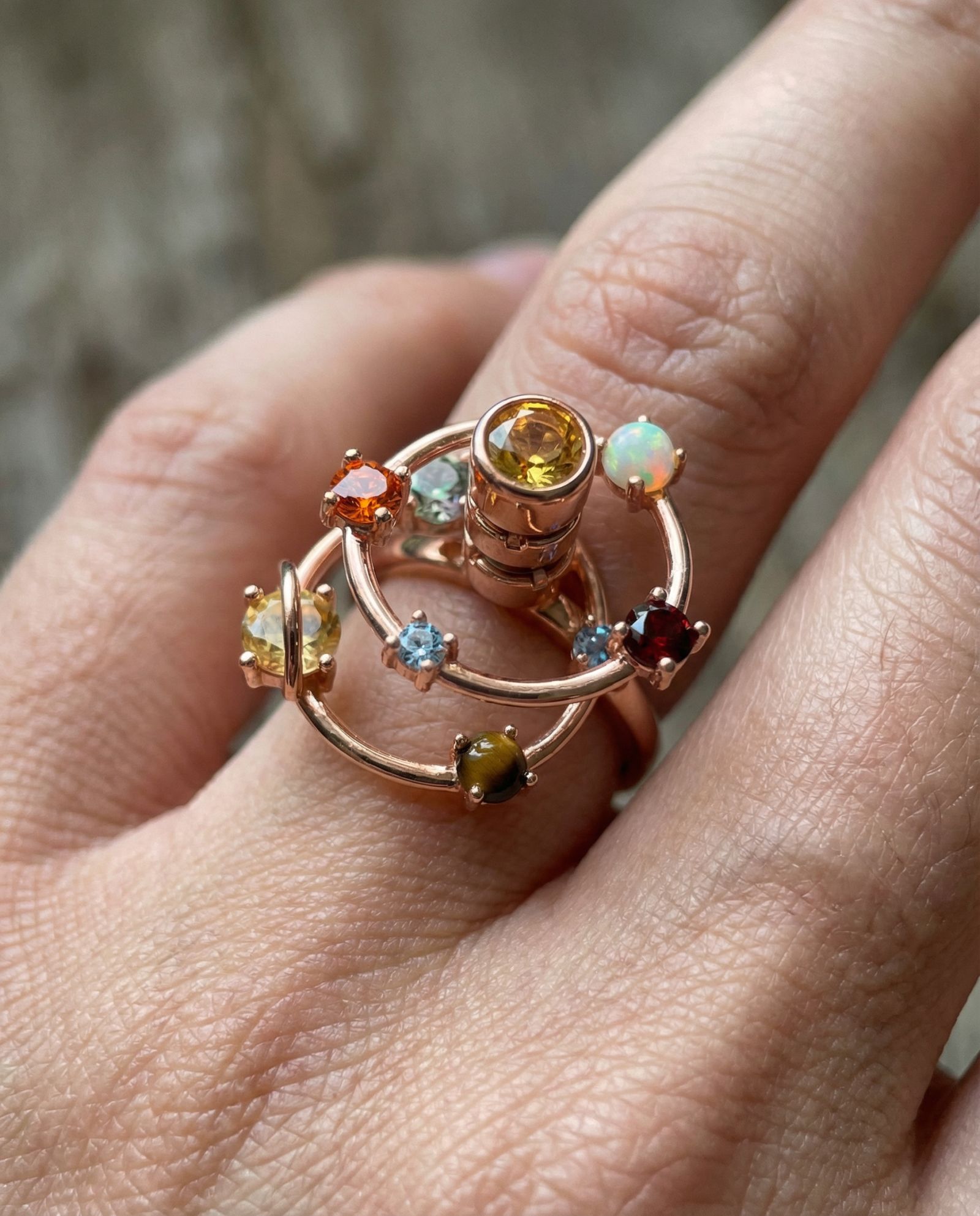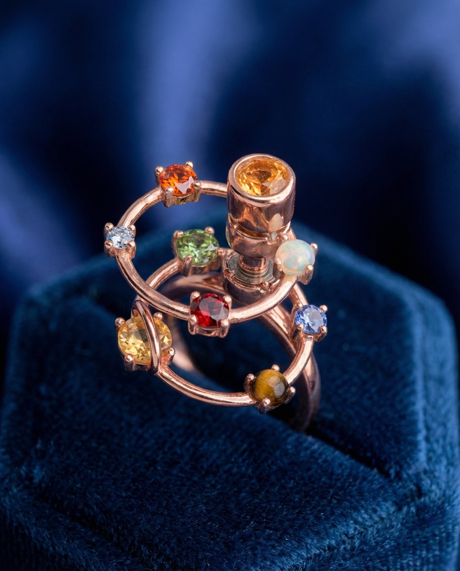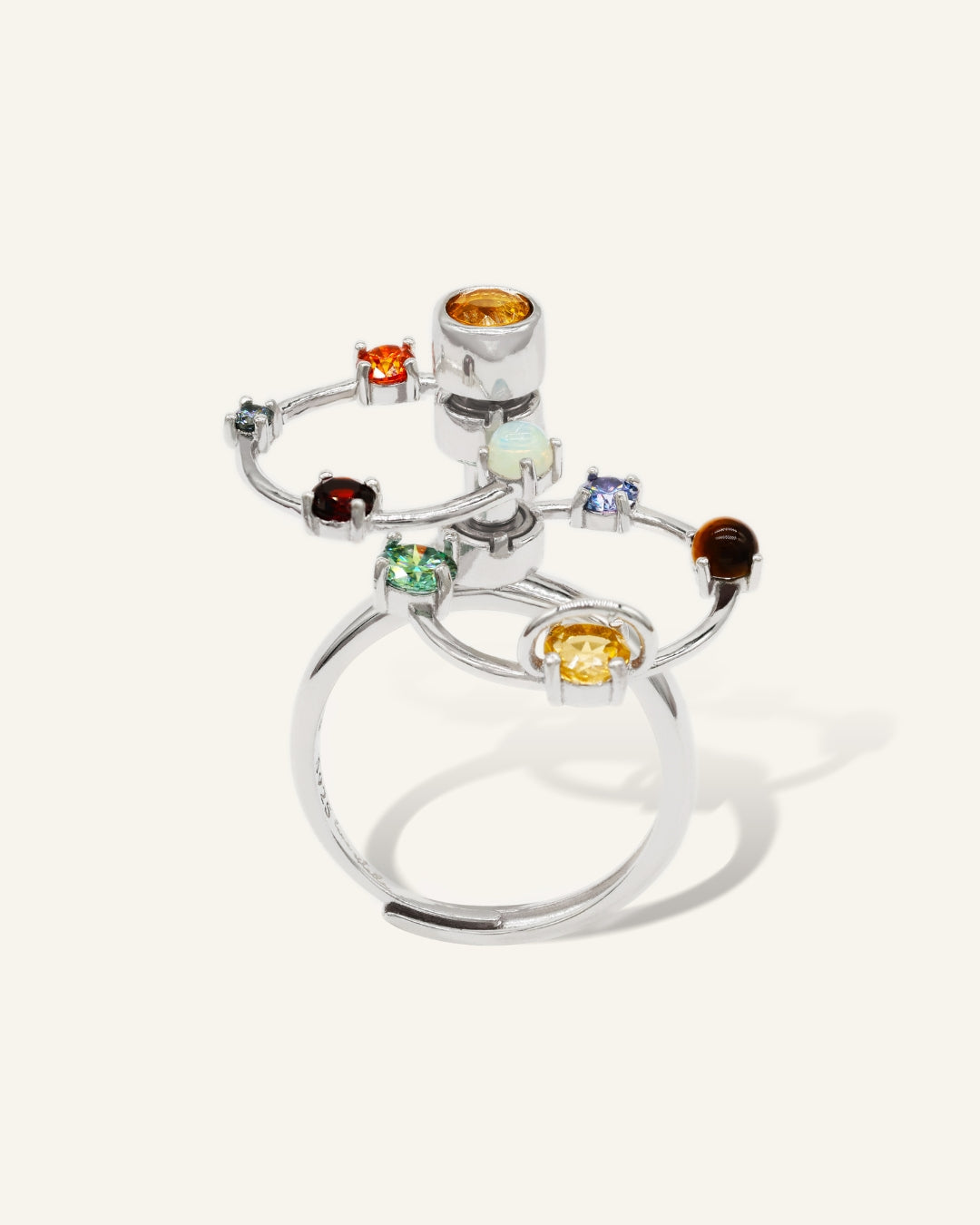 Explore the universe on your finger 🌌— our Cosmic Orbital Ring features all the planets 🌍🪐🌕 orbiting around the sun, and yes, it spins! A galaxy of wonder at your fingertips.