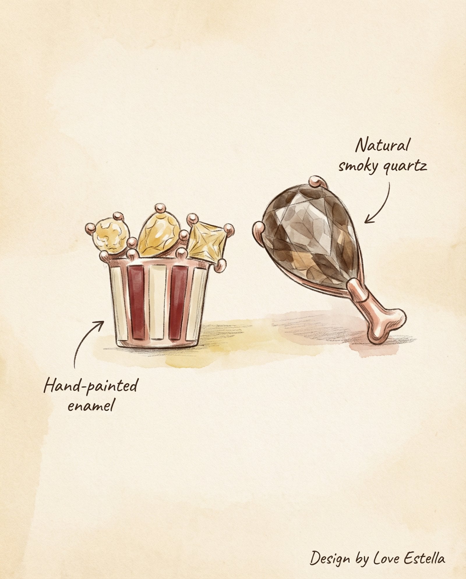 Due to the nature of gemstones, pearls, and handpainted enamel, variations in color, inclusions, and shape may occur.