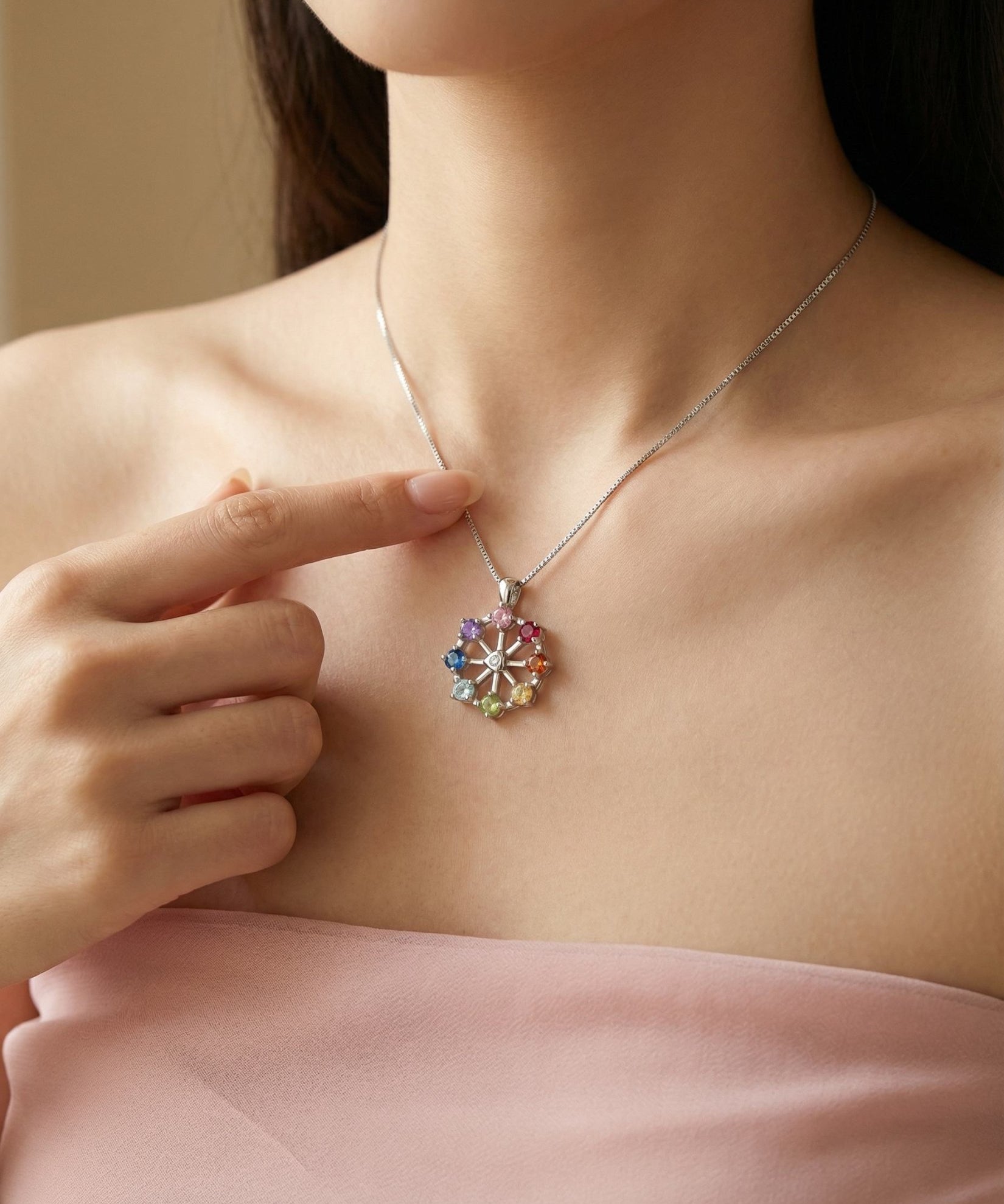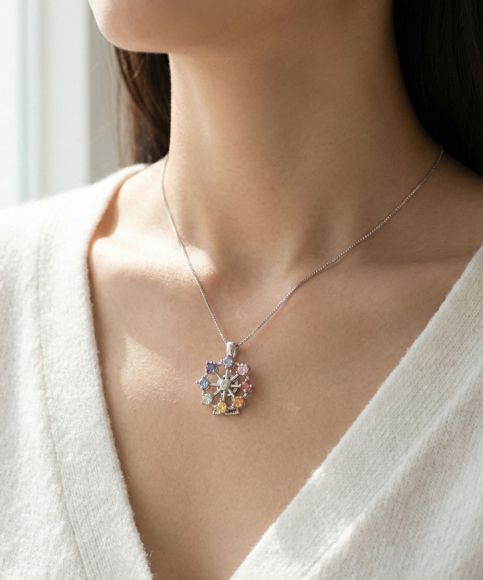 Spinning Ferris Wheel Necklace (Semi-Precious Gems)