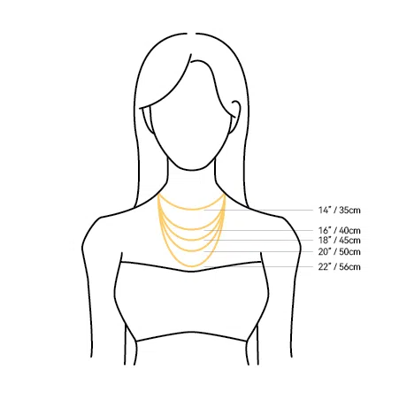 A popular length that most of our necklaces are designed to fit, falling just below the neck. Ideal for showcasing pendants or layering with shorter pieces.