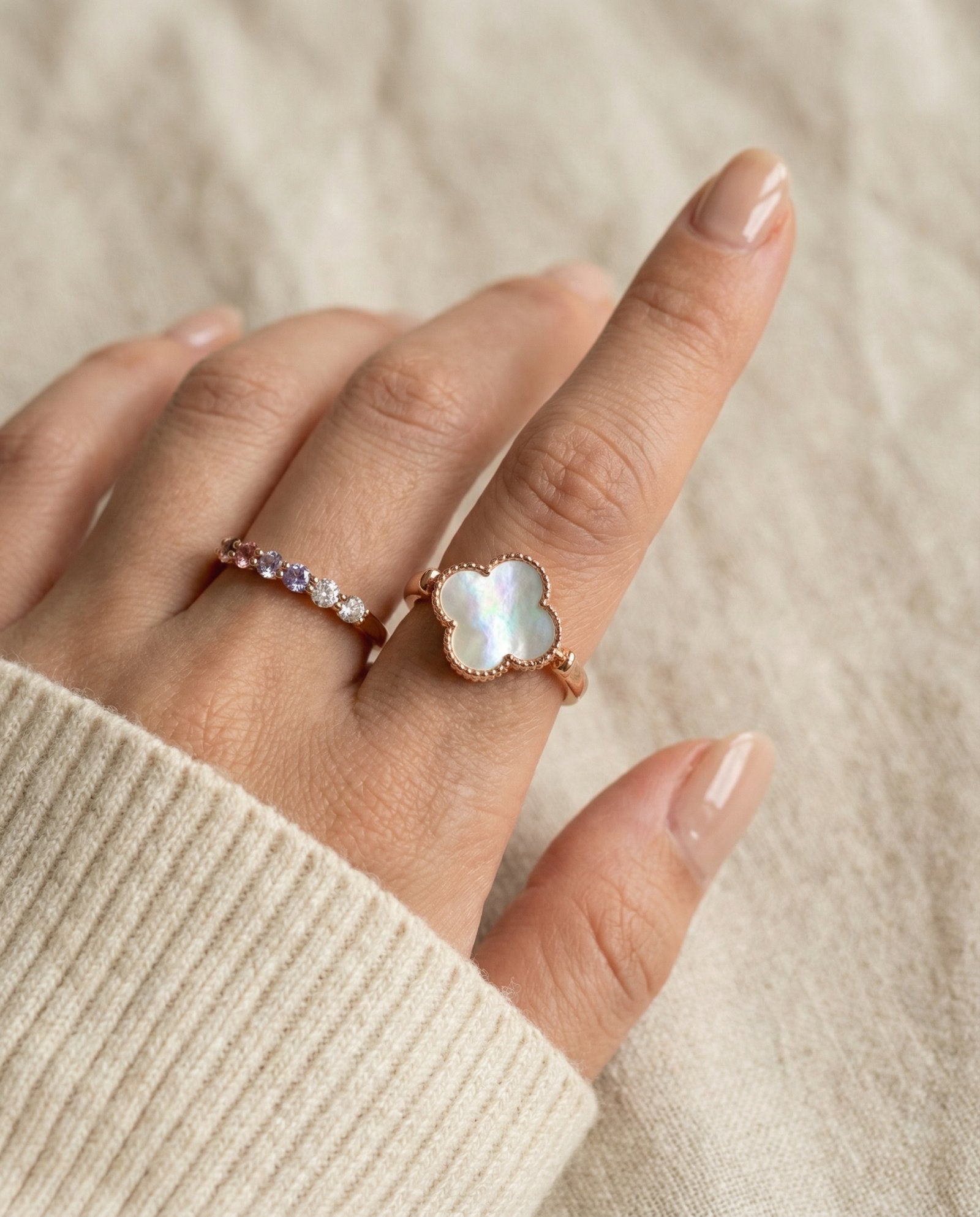 Think of it as your mood switch: calm and classic one day, bold and auspicious the next. Whether you’re dressing for love, luck, or simply how you feel that day, the Clover Flip Ring lets you choose your side 🍀✨