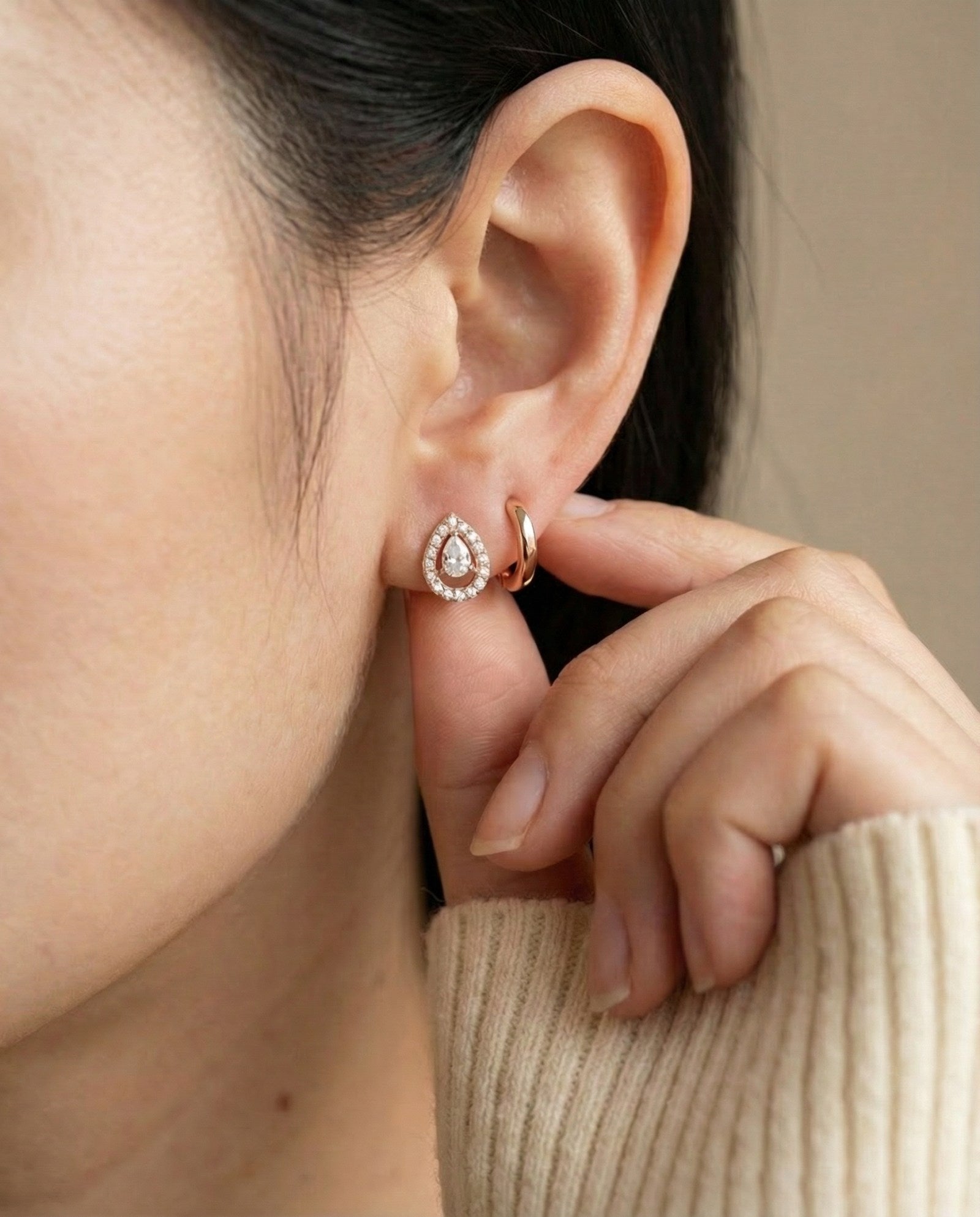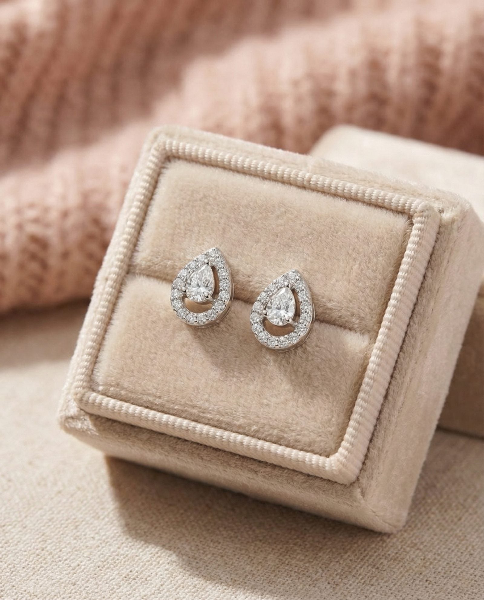 Delicate and refined, the Selene Pear Moissanite Studs are designed in a petite silhouette that feels light, effortless, and endlessly wearable. Each pear-cut moissanite is set with a subtle gap between the stone and the base of the setting, creating a soft floating effect that lets light pass through beautifully.