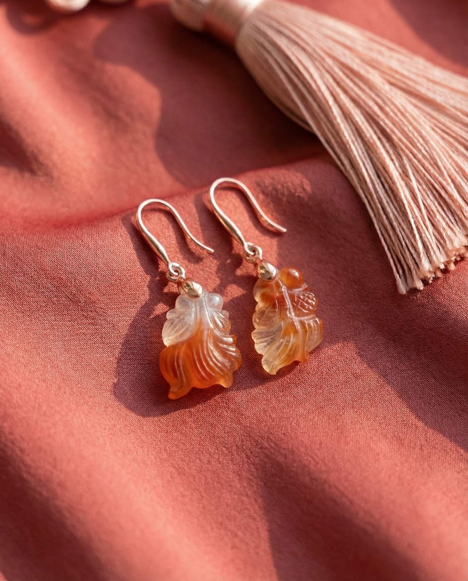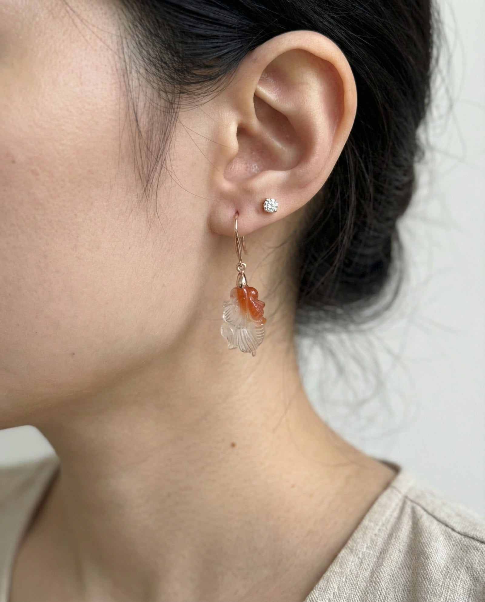 Hand-carved from natural agate, these goldfish drop earrings are a gentle reminder of the beauty found in nature and handmade details 🐟✨ Light and easy to wear, they sway softly with every step, bringing a touch of charm and quiet luck along the way.